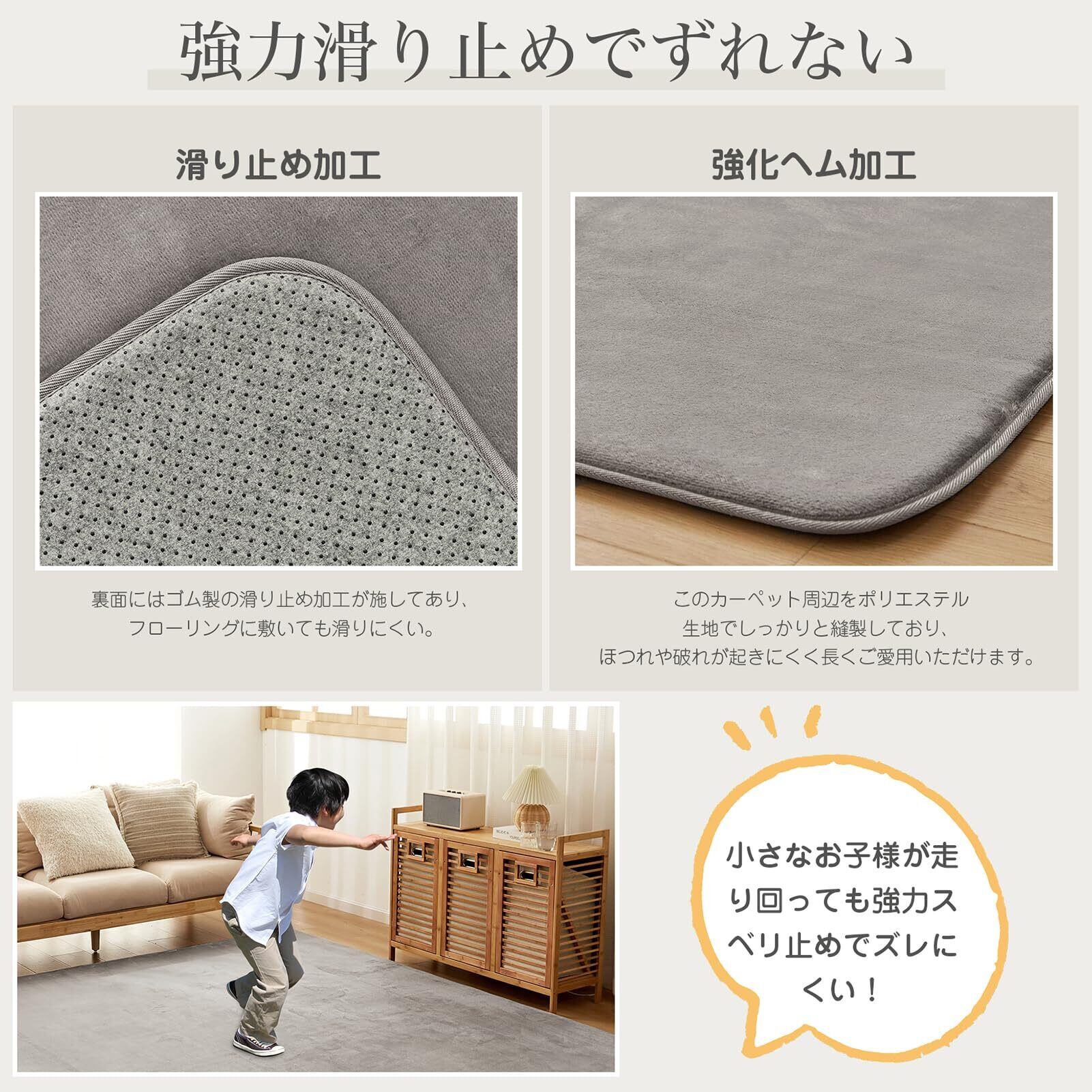 【短い毛足で簡単に掃除】カーペットの表面生地にはフランネル素材を使用し、繊細な毛先でやわらかく、滑らかな手触りを実現しました。短めの毛足でゴミが絡みにくく、一年中快適にお過ごしいただけます。