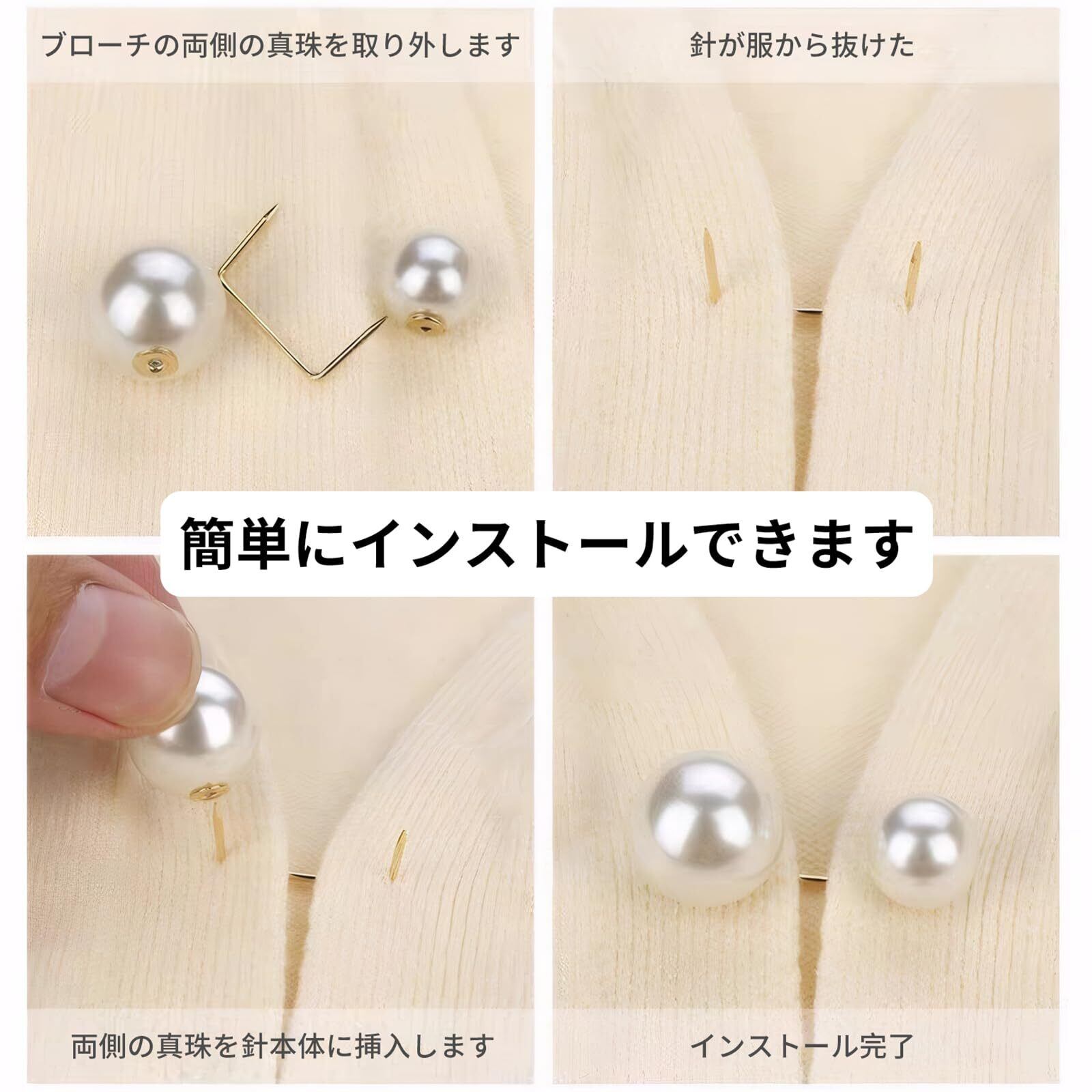 【実用性】:服に穴を開けにくい安全ピンタイプで、安心して毎日使える実用的なブローチピンです。パールブローチピンと安全ピンが一体化したデザインで、服に穴を開けずにしっかり固定。
