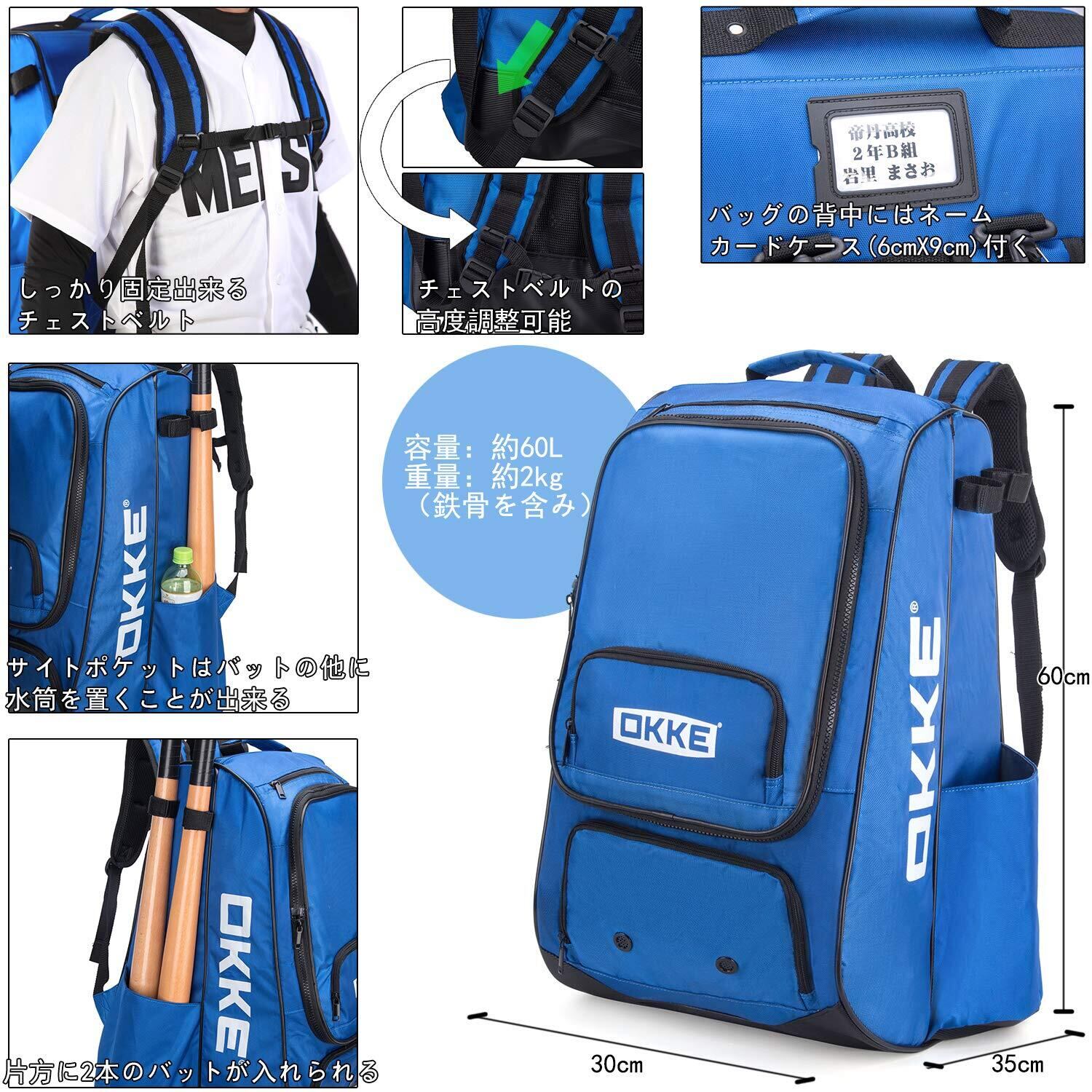 この【60L 野球 リュック】は、全ての野球愛好者に最適な、大容量のバックパックです。バットを4本収納できるデザインとクーラーバッグ付きの機能性で、練習や試合に向けてしっかりと準備が整います。活動的なあなたにぴったりのアイテムです!