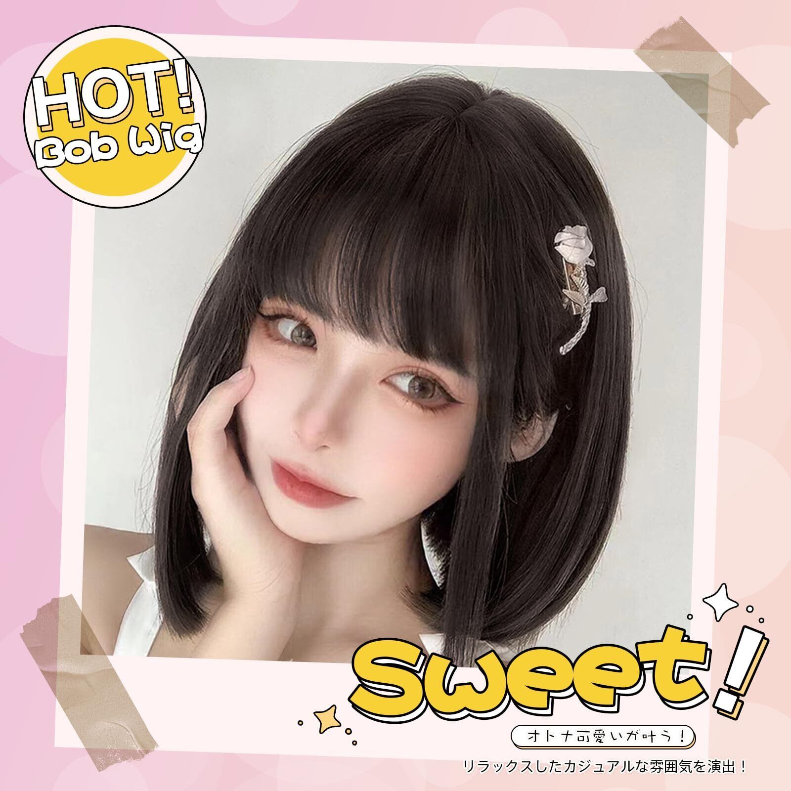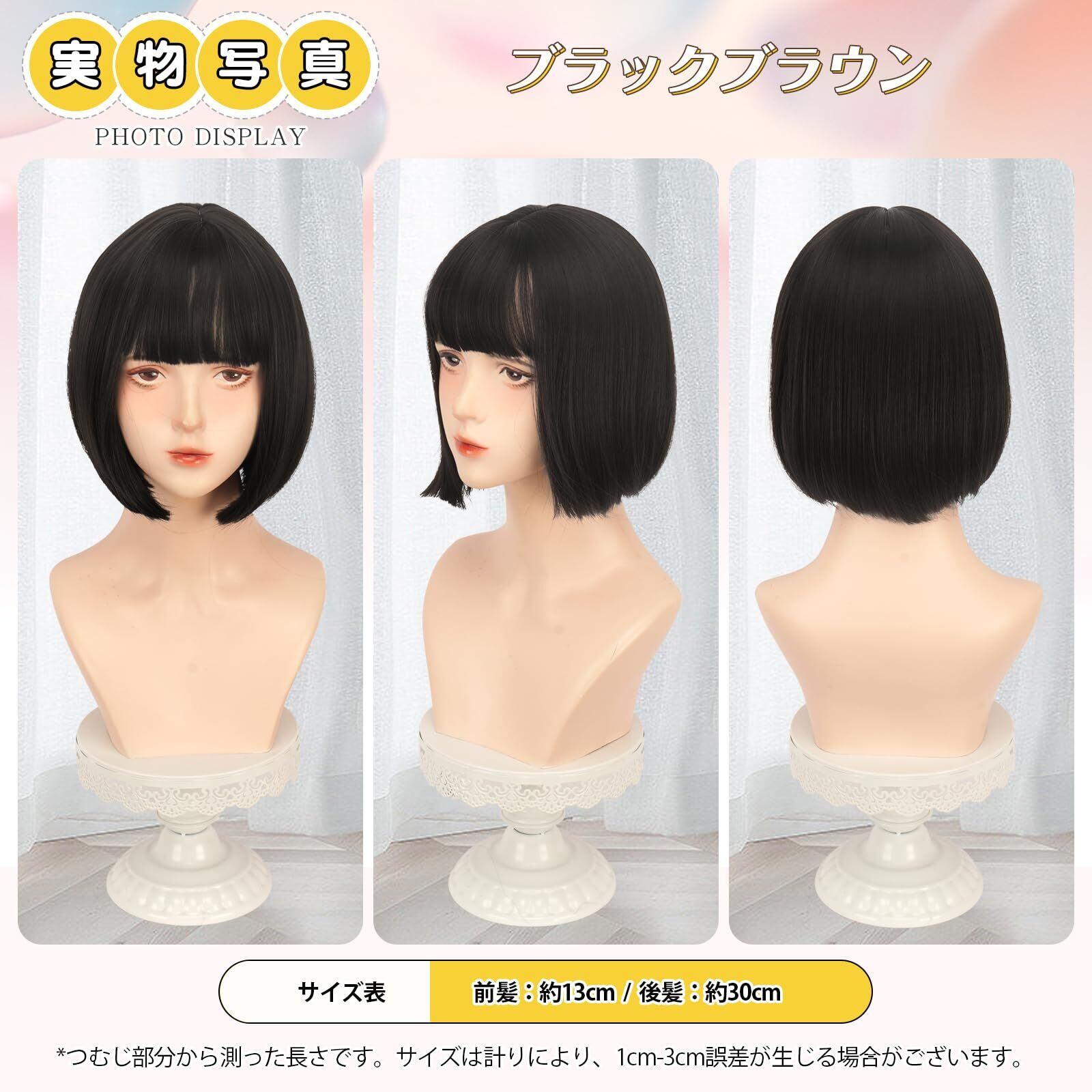 FESHFEN ウィッグ ボブ ショート フルウィッグ かつら レディーズ ウィッグボブ 女性用 女装 ストレート カツラ ボブウィッグ 女装 wig 自然 小顔効果 ハロウィン 原宿系 ロリータ ぱっつん前髪 日常 耐熱 ネット/櫛付き ブラックブラウン | Bloomia