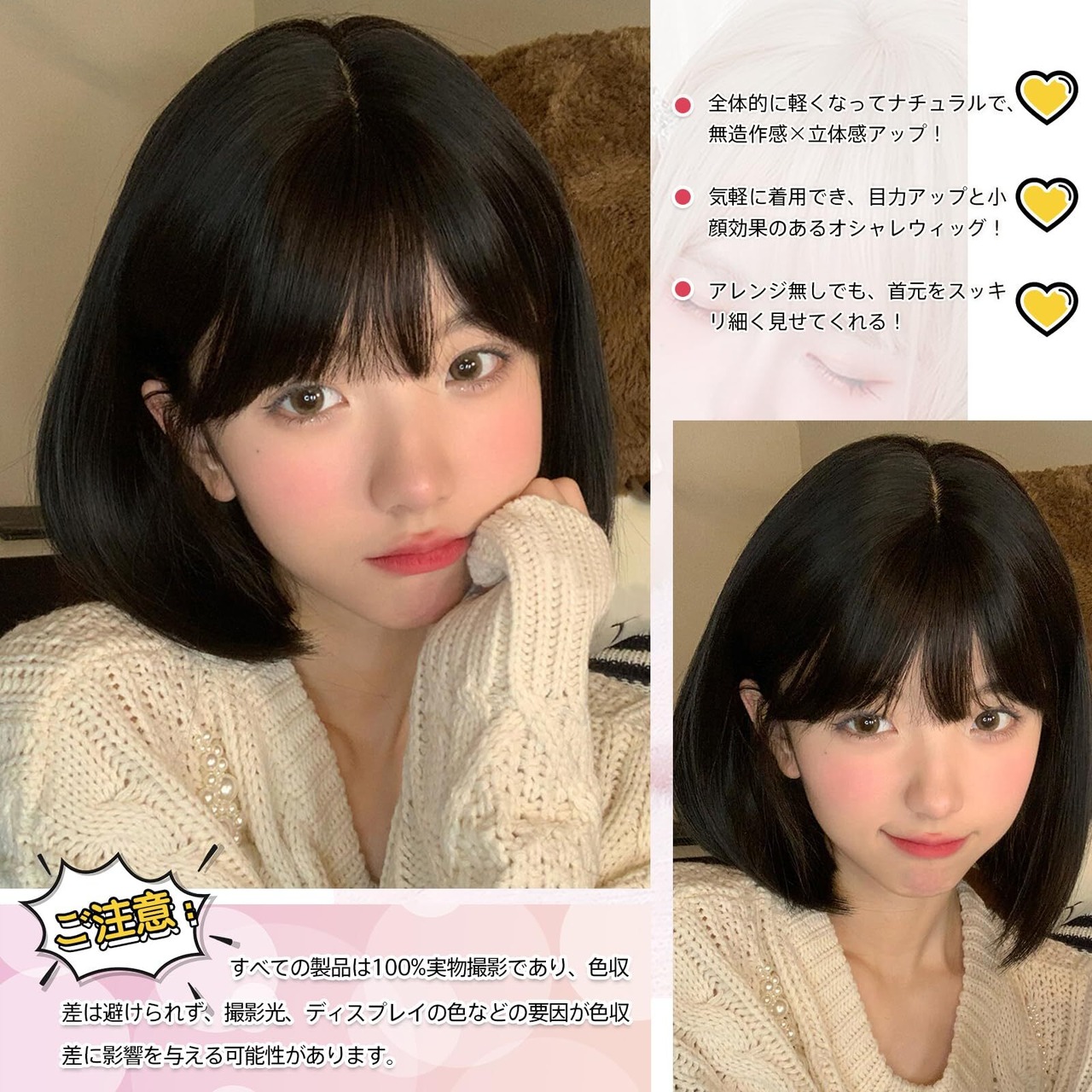 [FESHFEN] ウィッグ ボブ ショート フルウィッグ かつら レディーズ ウィッグボブ 女性用 女装 ストレート カツラ ボブウィッグ 女装 wig 自然 小顔効果 ハロウィン 原宿系 ロリータ ぱっつん前髪 日常 耐熱 ネット/櫛付き ブラックブラウン