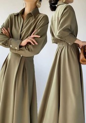 無地なレディース長袖ワンピース、上品でかわいいなデザイン、しわになりづらくさらさらで肌触りもよく着心地が抜群です。折り襟のデザインで美しいの首筋を強調してくれる、お顔周りをすっきりとシャープに小顔効果とさりげない大人の色気を演出します。