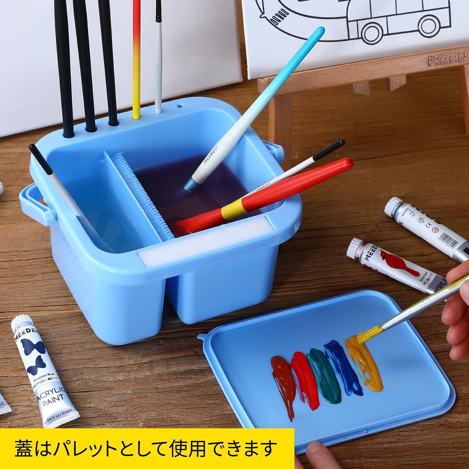MEEDEN 筆洗いバケツ 筆洗器 筆あらいバケツ 多機能 蓋&取っ手&筆挿し付き 轻量コンパクト 携帯便利 アクリル絵具・水彩・水性塗料対応 野外写生/教室/旅行に最適