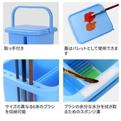 この筆洗器は、蓋付きで乾燥や汚れを防ぎ、さらに取っ手や筆挿しが付いているため、使用後の収納も安心です。筆をしっかりと立てて保管できますので、大切な道具を守りながら、アート活動を楽しむことができます。