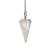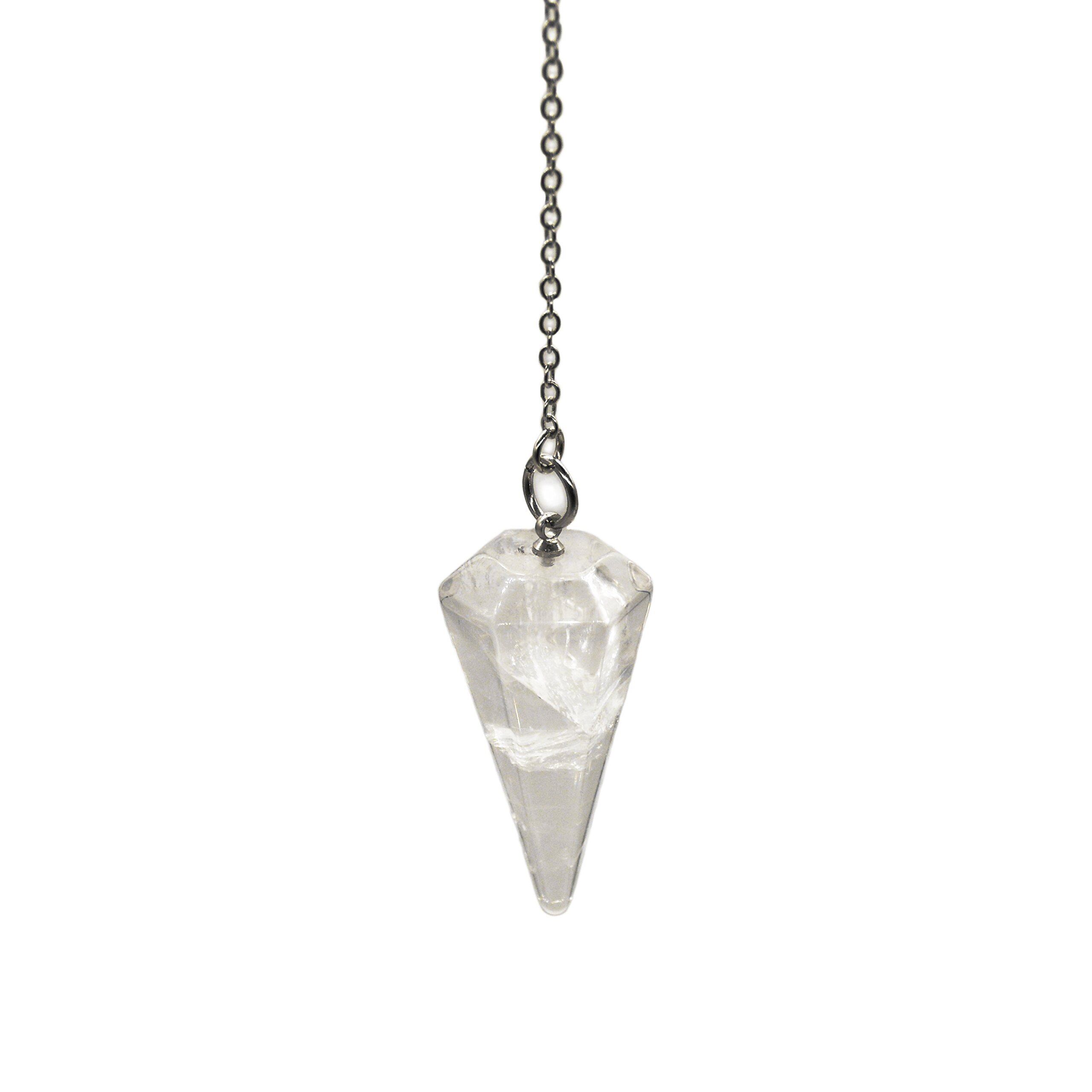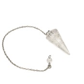 [天然石パワーストーン ペンデュラム振り子] ダウジング風水占い用 天然水晶透明クォーツ製 ヒーリングストーン チャウラストーン六角錐 6面カット 金属チェーン付き