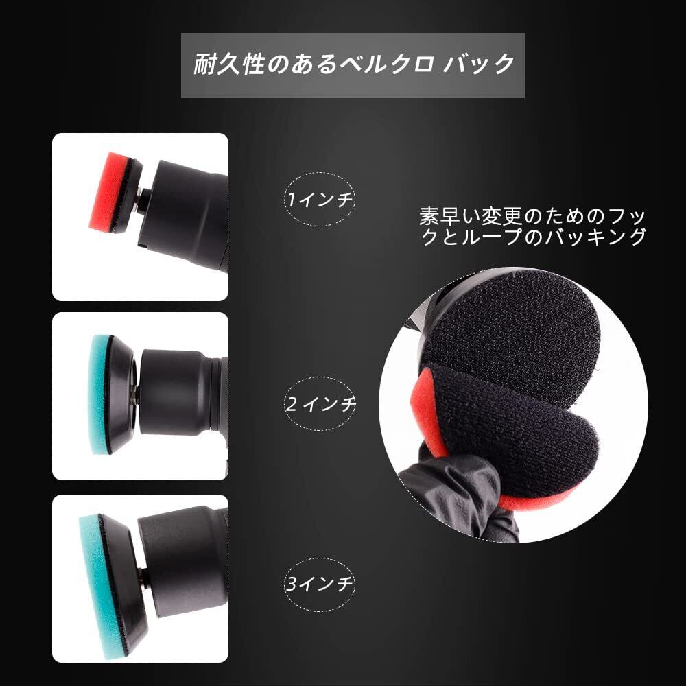 付属コンポーネント ポリッシャーヘッド、バッキングプレート、レンチ、ピン、バッグ、スポンジパッド(青、黄、緑、ブルー、パープル、日本のウール)、マイクロファイバーパッド、マジックパット
