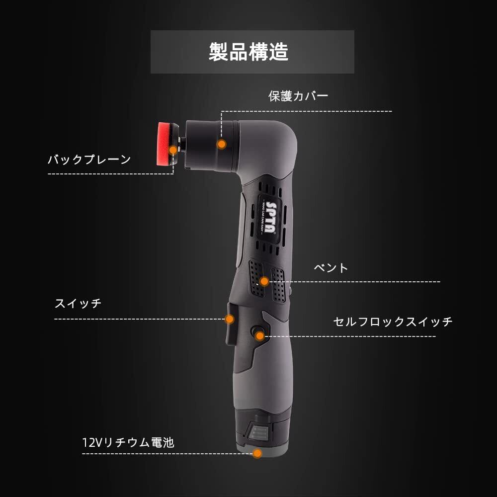 SPTA ミニ12v充電式ポリッシャー コードレスポリッシャー 7段変速自動車研磨 車磨き 家庭掃除磨き用 艶出し 傷消し LEDライト表示 仕上げバフ・2つのバッテリー・充電器・収納バック付き AW-A052-LNHN | Bloomia