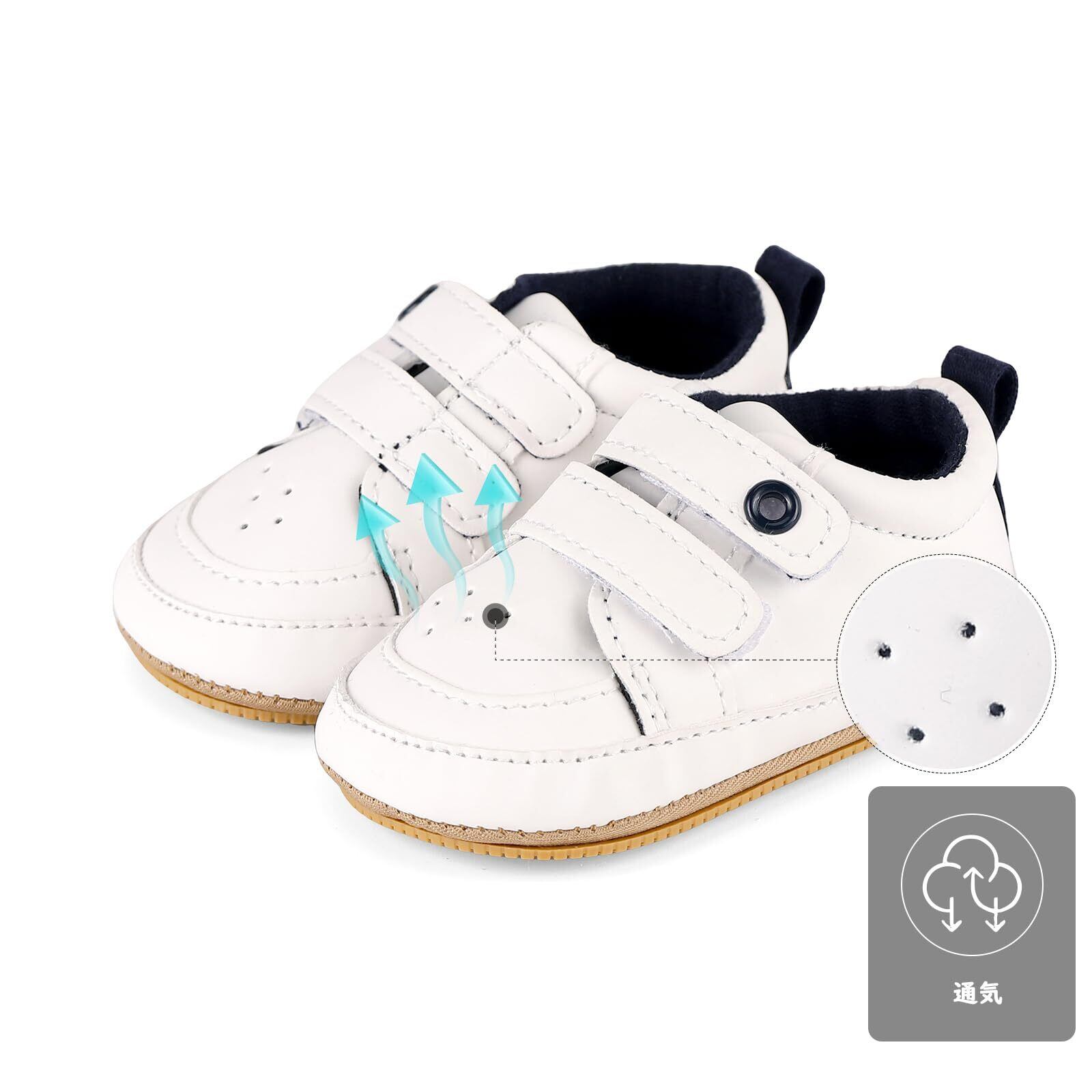 赤ちゃんの柔らかい足に優しい素材を使用しており、快適な履き心地を実現しています。軽量で柔軟性のある作りは、動きやすさを考慮しており、赤ちゃんが自由に動き回れるように設計されています。