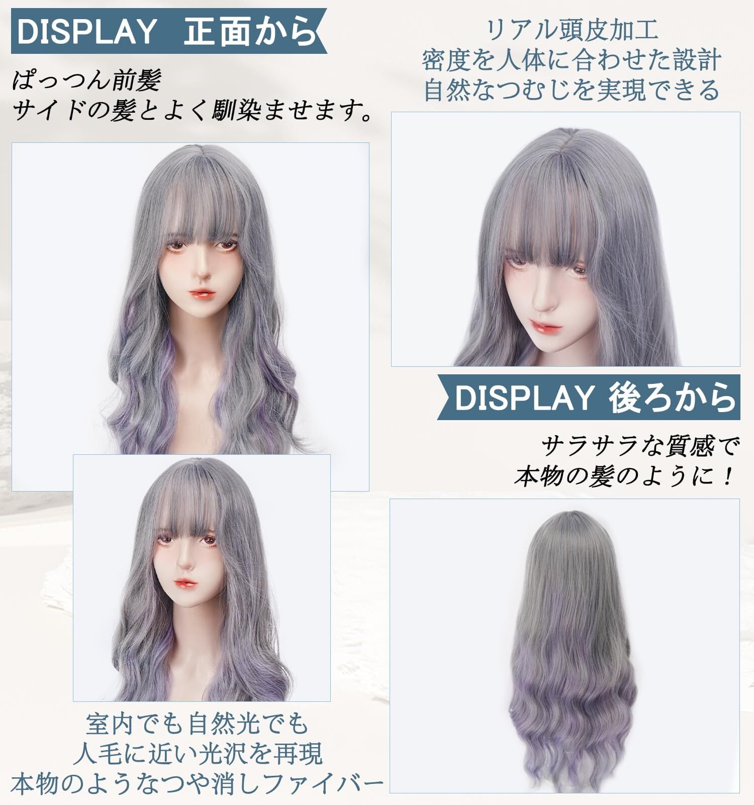 BARSDAR ウィッグ ロング 自然 カール ウェーブ 巻き髪 ロングヘアー かつら 女装 フルウィッグ ロリータ コスプレ かつら wig 小顔 自然 耐熱 ネット付き(グレー&パープル) | Bloomia