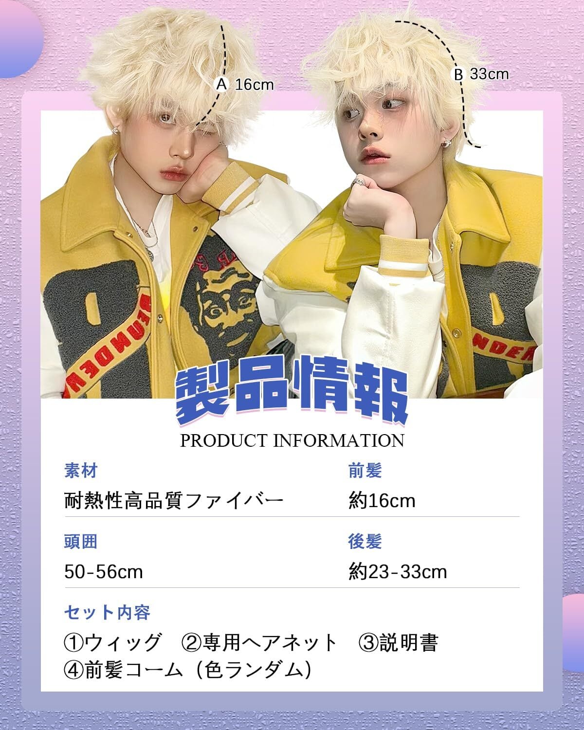 Sofeiyan ウィッグ メンズ 男装 ショート ウルフ フルウィッグ 男装ウィッグ ウルフカット かつら 普段使い 自然 耐熱 日常 原宿 地雷 人気 小顔ウィッグ コスプレ cosplay wig 男女兼用 ウィッグネット付(ライト亜麻ゴールド) | Bloomia