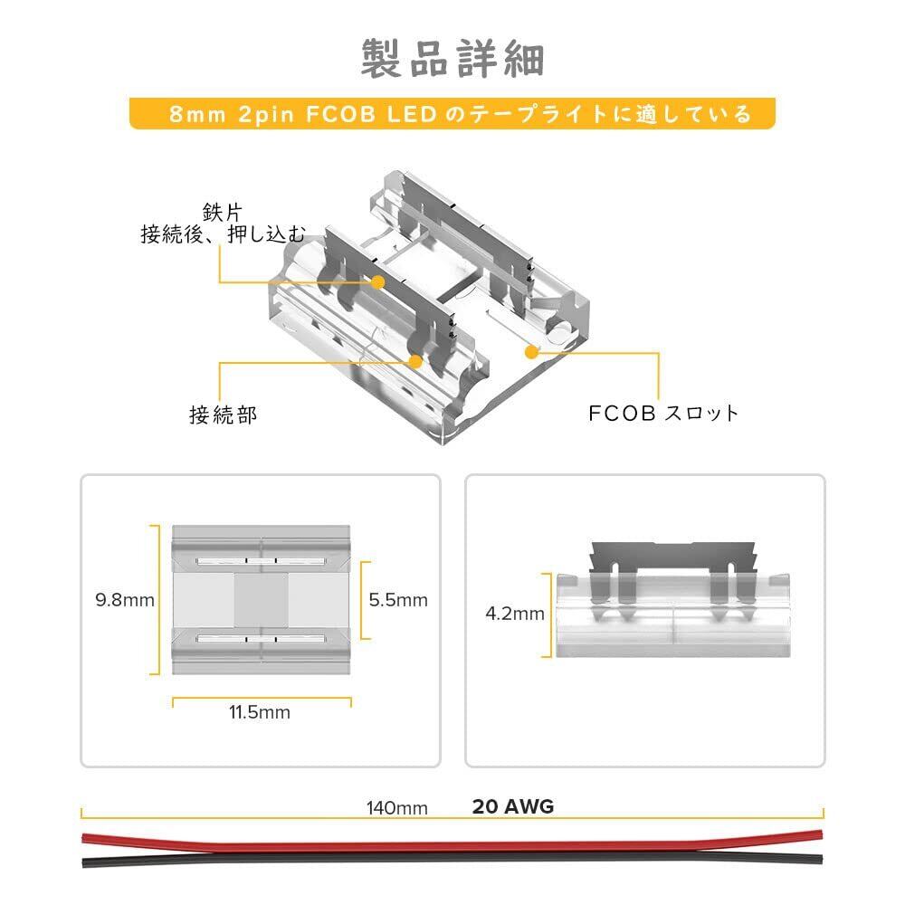 BTF-LIGHTING 2PIN コネクター FCOB COB 8mm 14個透明なコネクター 15cm長さ 20AWG延長コードケーブル FCOB FOB LEDテープライト用の透明なミドルカバーコネクター 半田不要 テープライトまたはケーブルに直接接続可能 | Bloomia