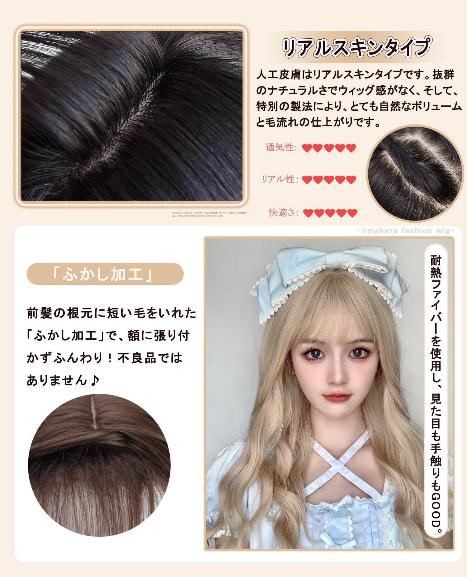 [Limakara] ウィッグ ロング 巻き髪 金髪 自然 フルウィッグ ナチュラルロング レディース カール 女装 ウェーブ ぱっつん前髪 かつら ロリータ コスプレ wig ファッション 耐熱 小顔 日常 原宿系 人気 地雷系 ネット/櫛付き 白金色