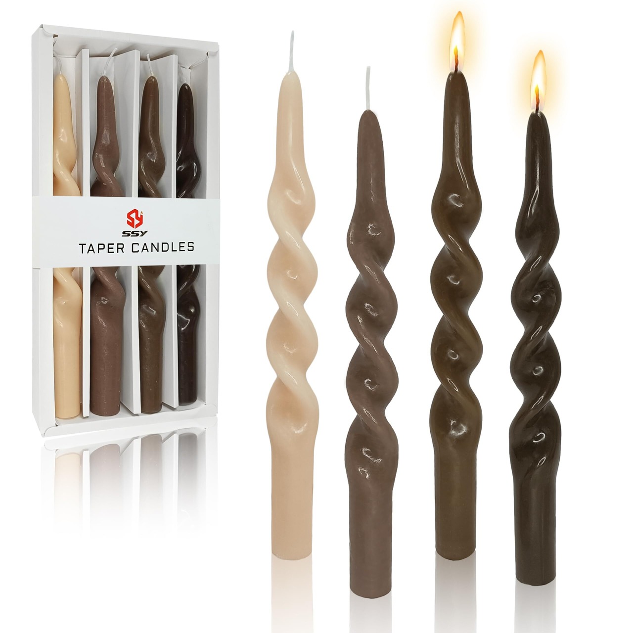 手作りらせん状のテーパーキャンドル 蝋燭 カラーグラデーション キャンドル 人気 ろうそく 結婚式 家居裝飾 無香気 ロウソク 4個入り (10 Inch, G-Brown)