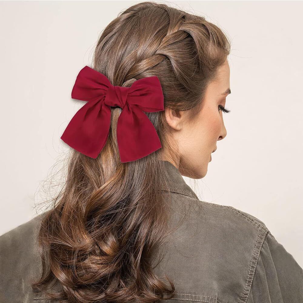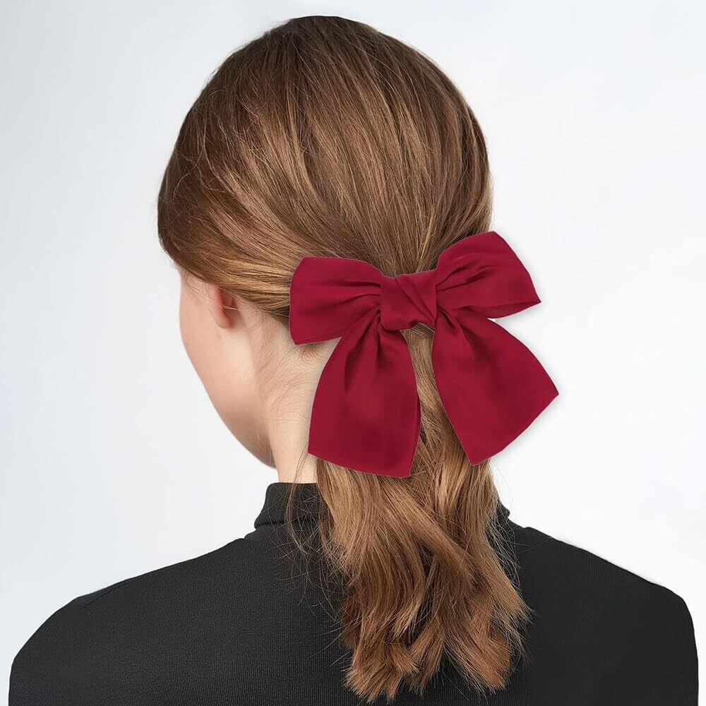 サムコス 成人式 髪飾り ウェディング ヘッドドレス ヘアアクセサリー 髪飾り 成人式 卒業式 結婚式 大きめ 髪留め ビッグ リボン バレッタ おしゃれ (赤)
