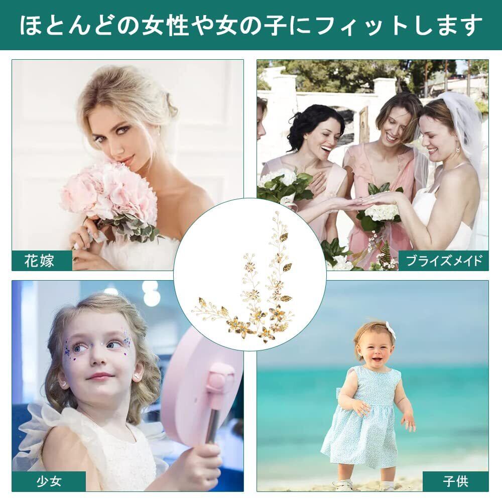 ✽【エレガントなデザイン】:立体感のある花やリーフ、高級感のあるパールやラインストーンを使って、キラキラ輝き、とても可愛くて目立ちます。光沢があるので、優雅な印象が際立ちます。花嫁さんの可愛らしさと上品さをより一層引き立てます。女の子に大人気のヘッドドレス!
