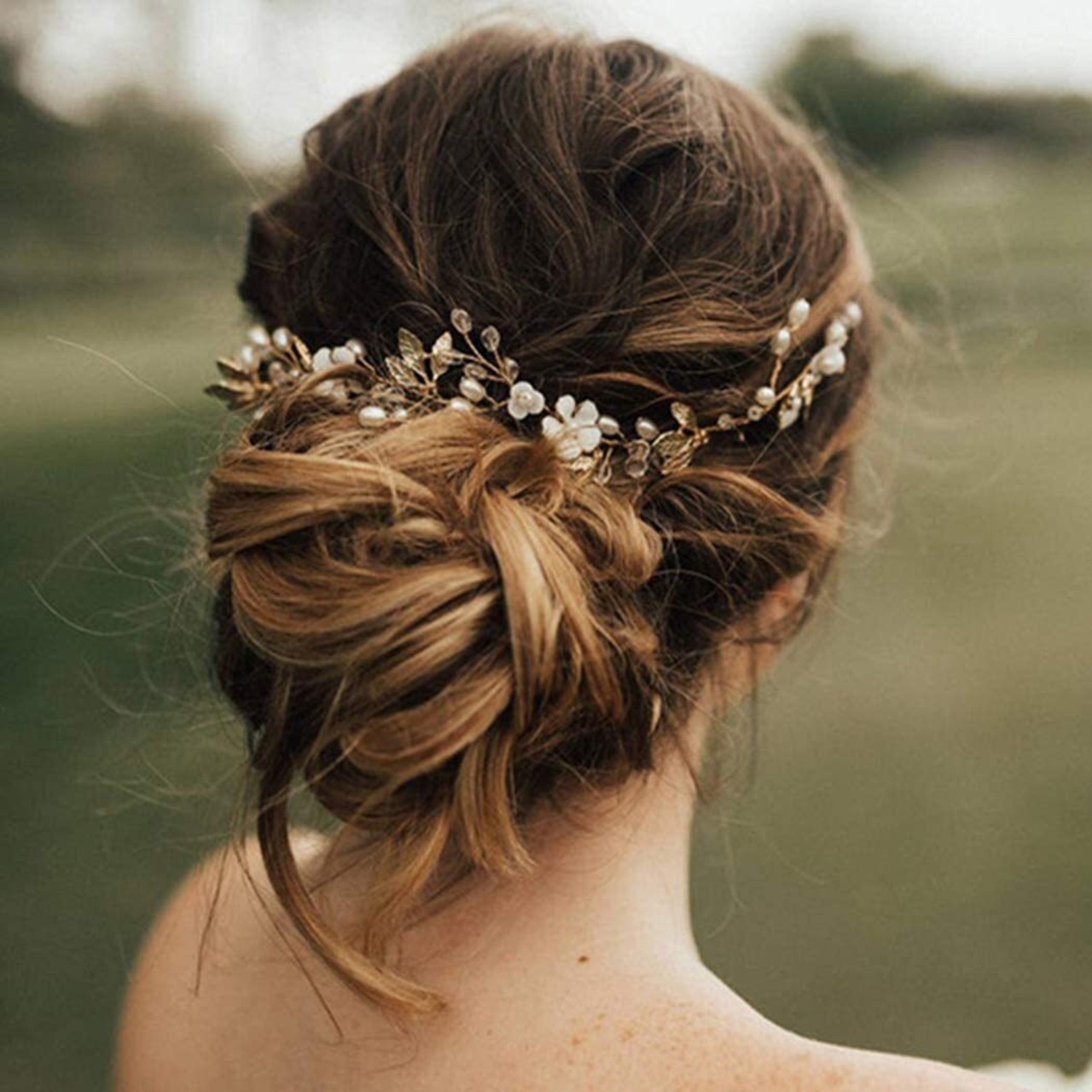 SIYINGSAERY ウェディング ヘアアクセサリー ヘッドドレス 小枝 花 ブライダル 髪飾り 花嫁 カチューシャ ヘアピン パール ラインストーン 和風 髪留め 女の子 撮影 結婚式 披露宴 成人式 入学式 卒業式 発表会 ダンス パーティー用 (ゴールド) | Bloomia