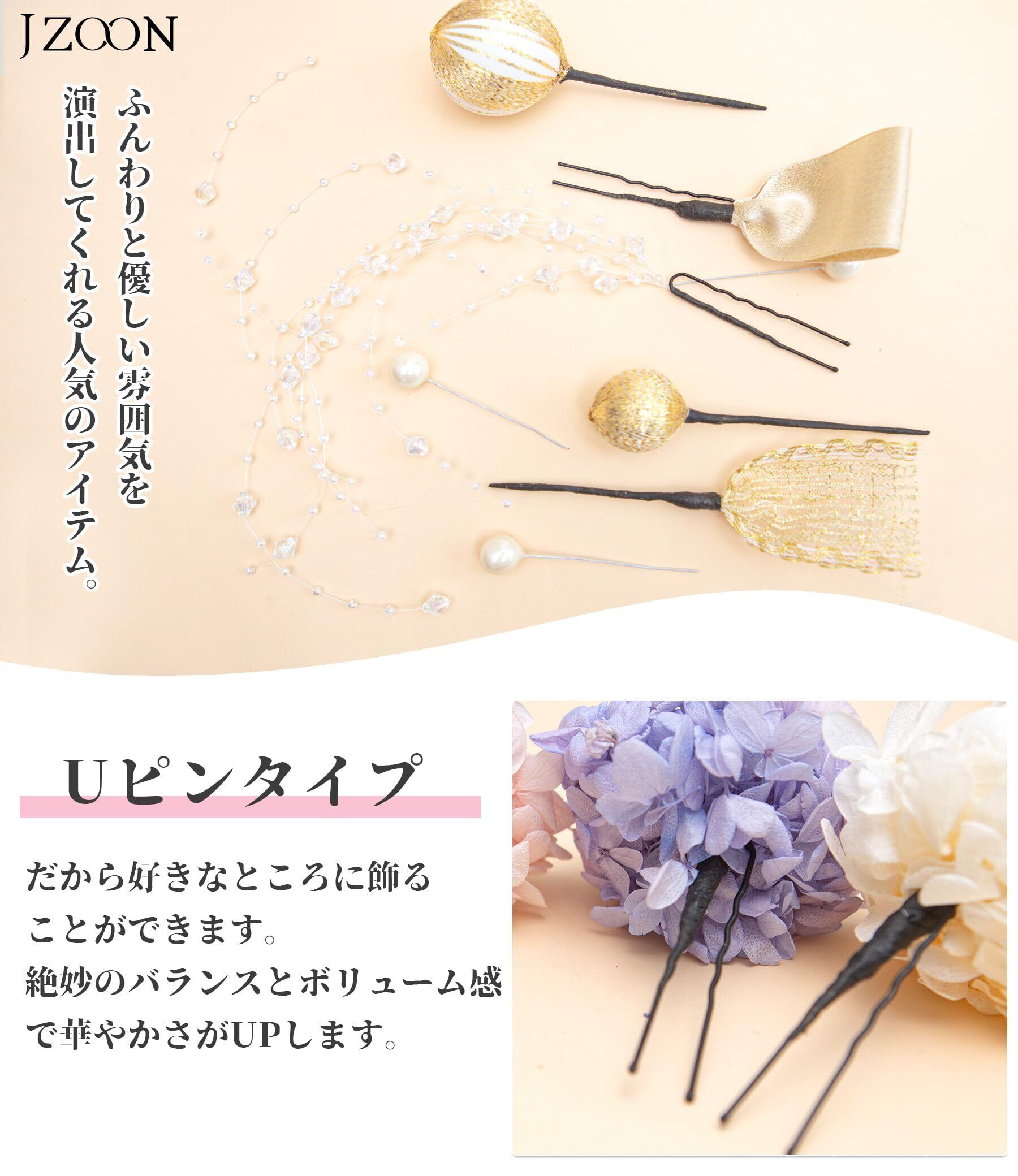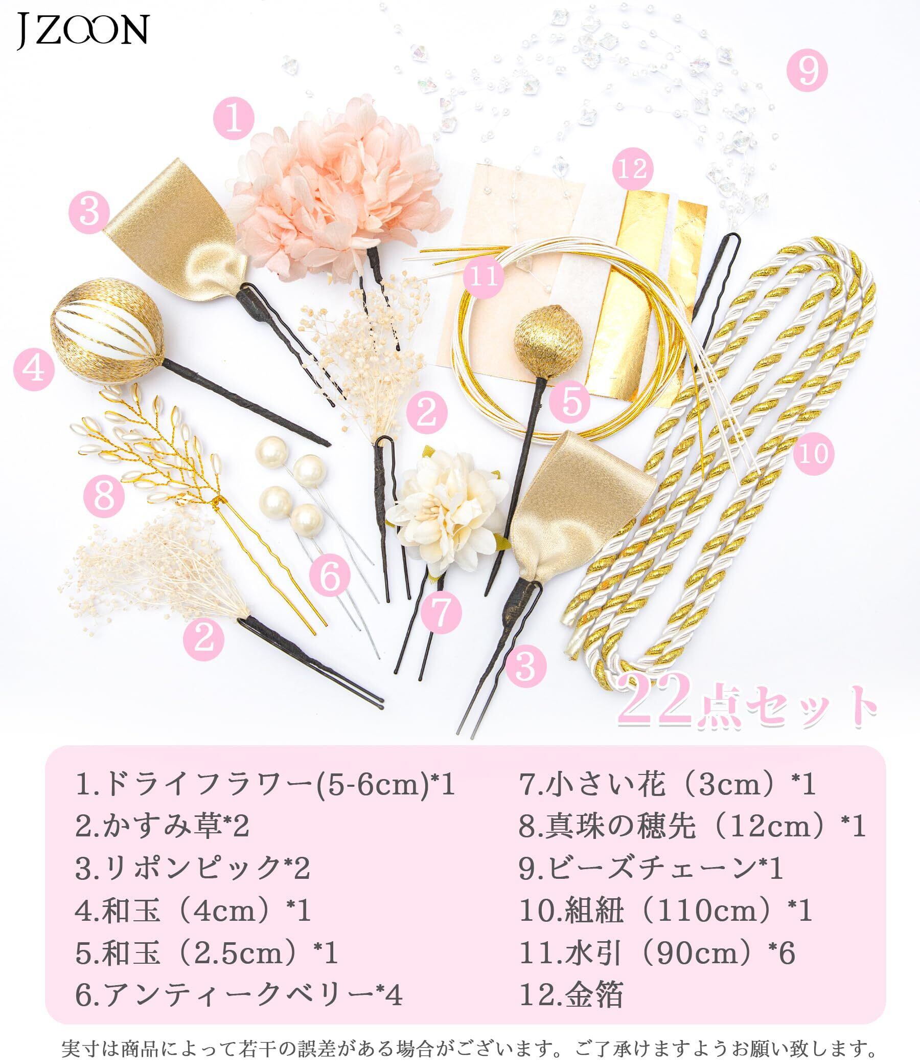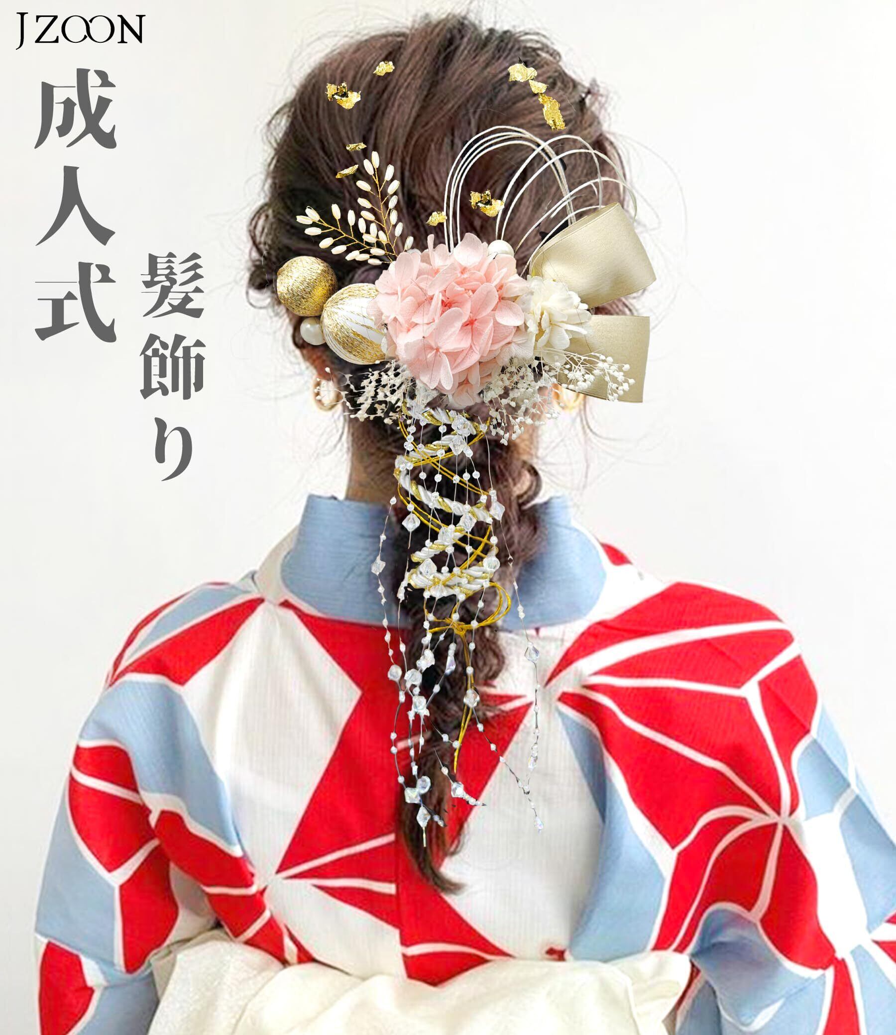 [JZOON] 髪飾り 9色展開 成人式 髪飾り ドライフラワー 袴 卒業式 和装 結婚式 振袖 プリザーブドフラワー 金箔 紐アレンジ 水引 和玉 A1600