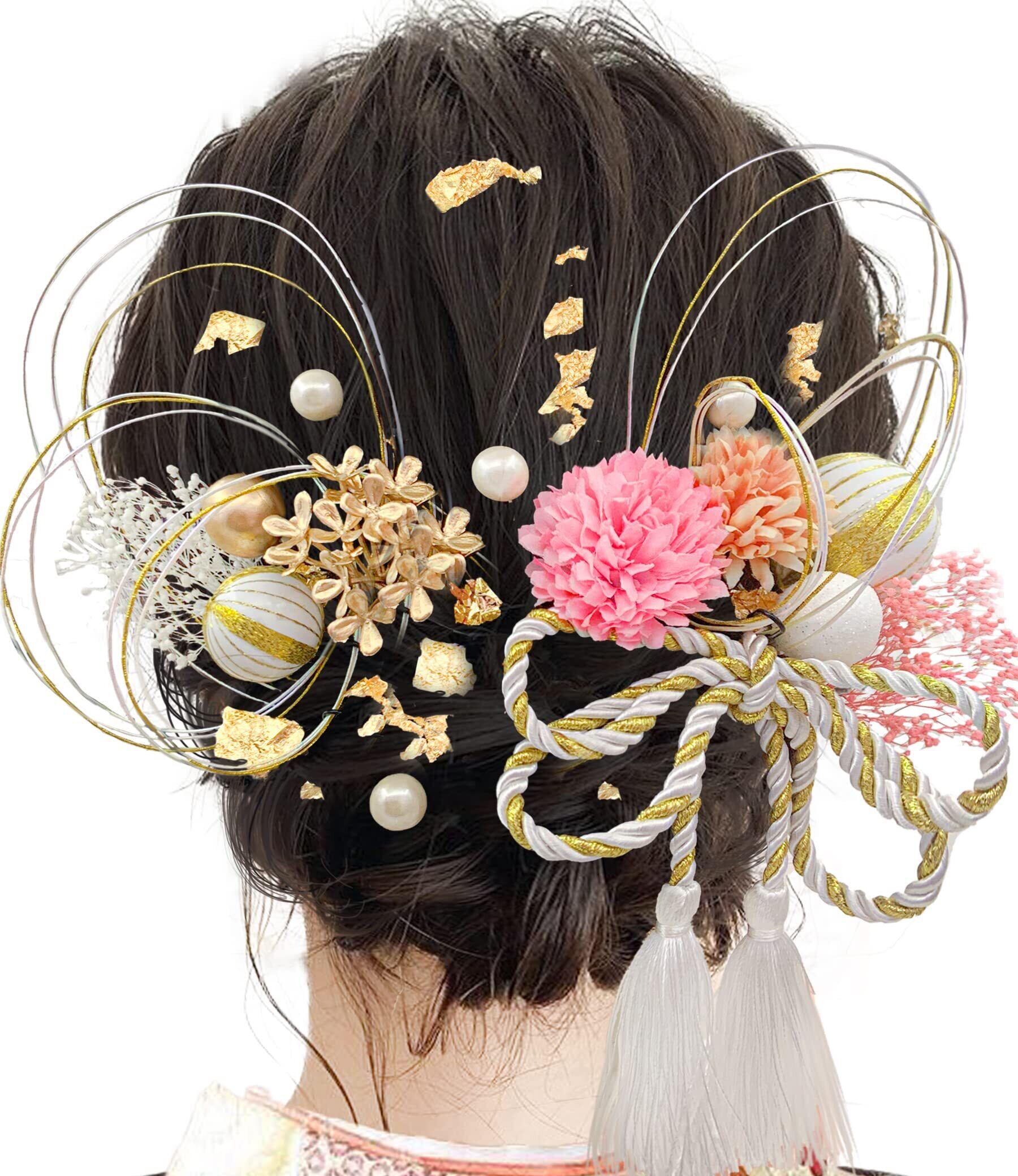 [JZOON] 髪飾り 成人式 浴衣 髪飾り 七五三 金箔 卒業式 結婚式 水引 袴 振袖 和装小物 造花飾り 着物 和装[F1005]