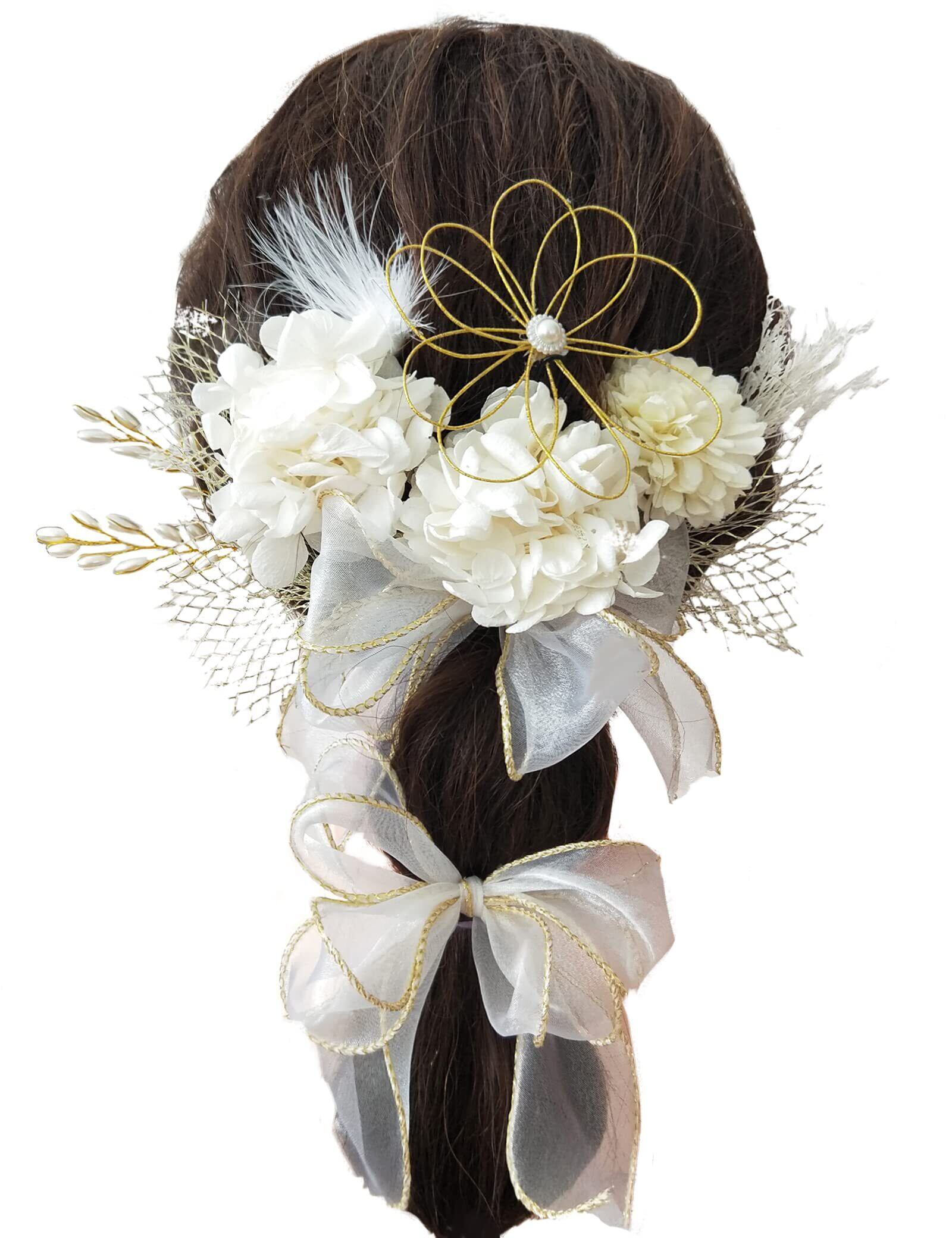 [JZOON] 6色展開 リボン 髪飾り 成人式 ドライフラワー 卒業式 七五三 浴衣 和装 袴 結婚式 振り袖 振袖 着物 水引き 赤 かすみ草 パール