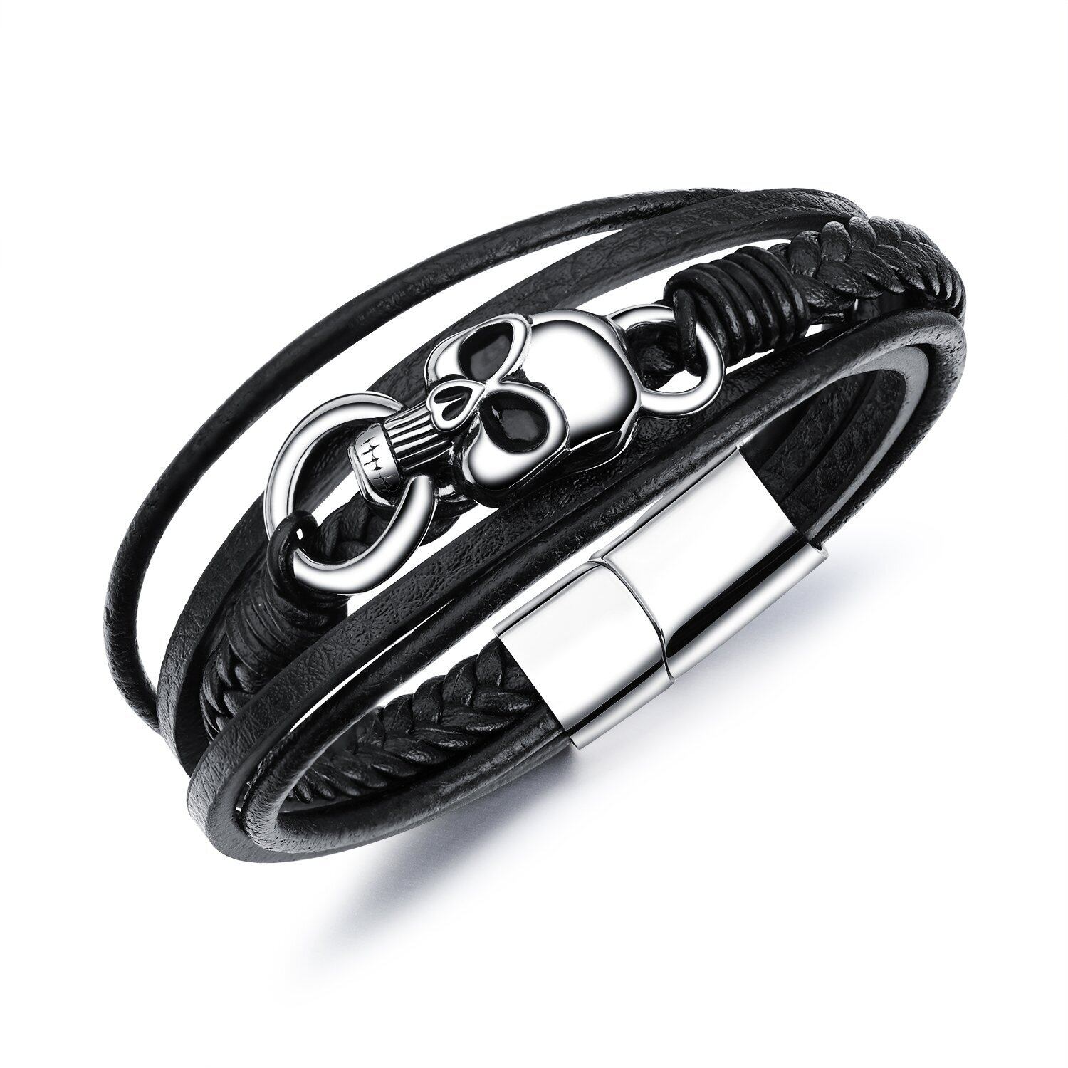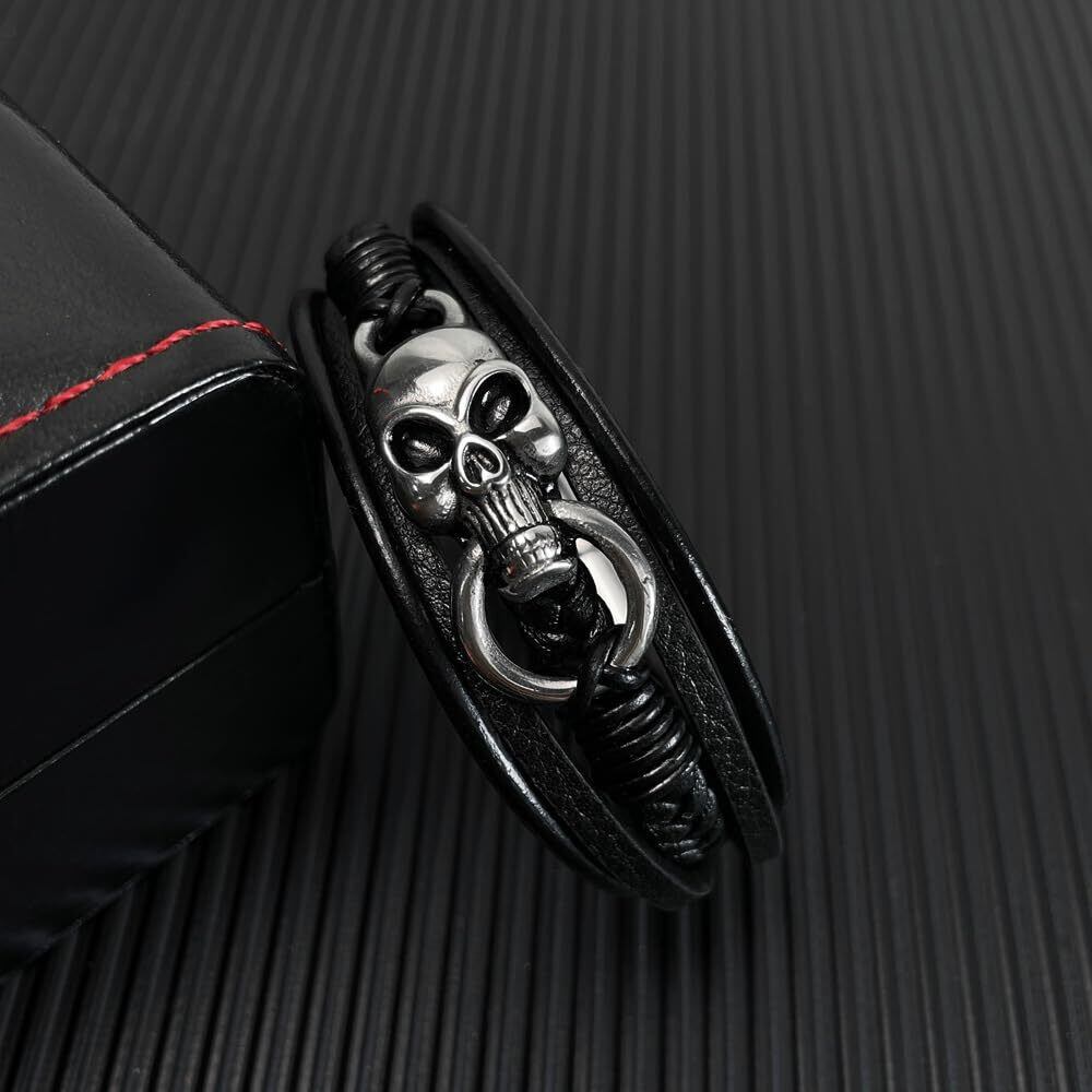 「Rockyu ブレスレット」髑髏ブレスレット 黒 レザーブレスレット ブラック 素材: シンプル バングル 重量: 32g