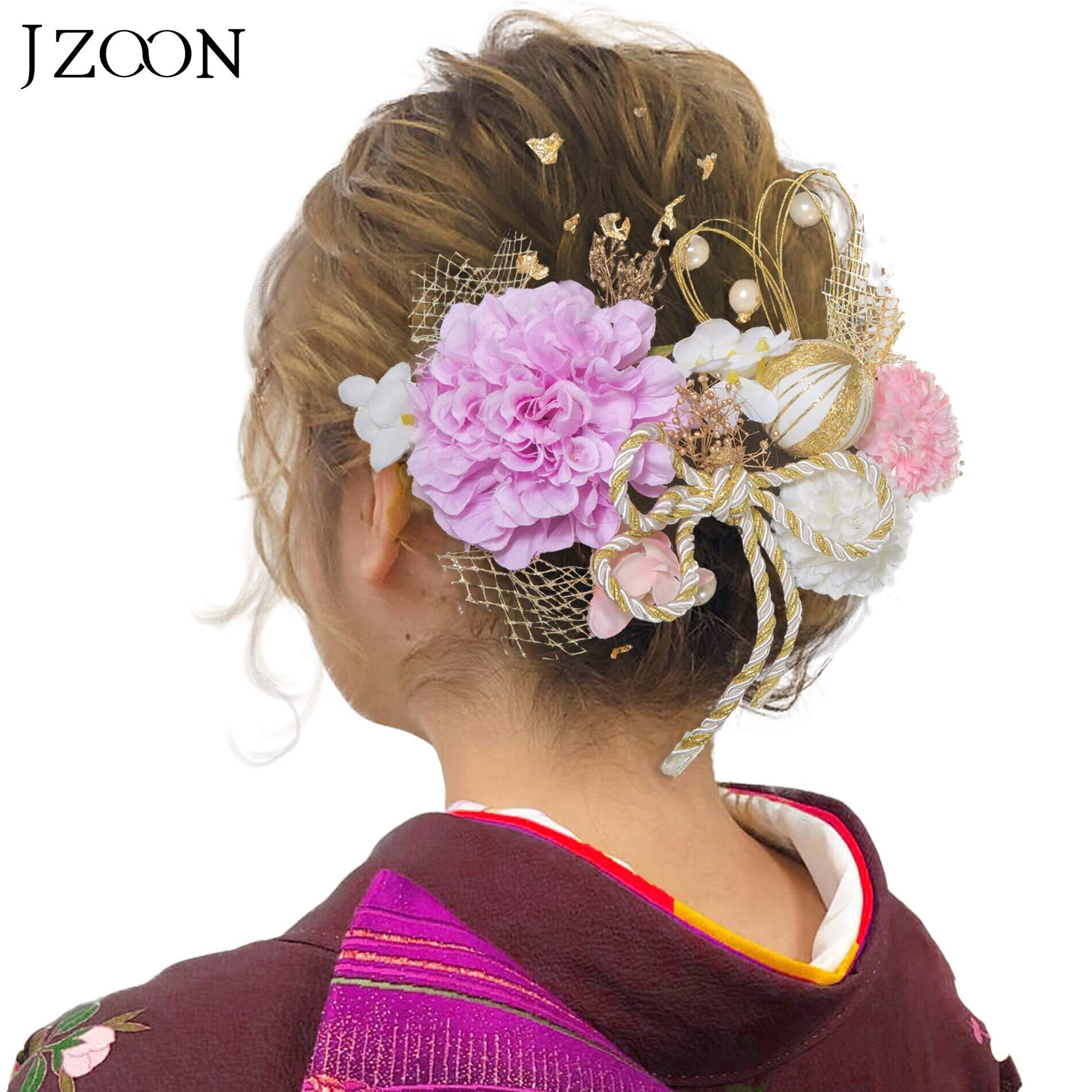[JZOON] 10色展開 ドライフラワー 髪飾り ダリア 造花飾り 和玉 赤 ヘアアクセサリー 成人式 ゴールド 水引 ヘッドパーツ あじさい 振袖 着物 卒業式 七五三 浴衣 袴 結婚式 かすみ草 和装 造花 手作り 専用ケース付き | Bloomia