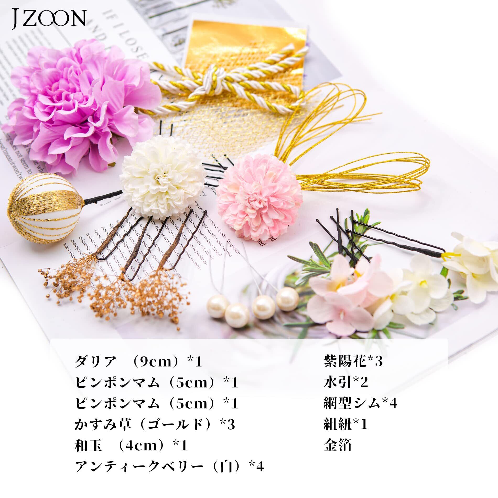 [JZOON] 10色展開 ドライフラワー 髪飾り ダリア 造花飾り 和玉 赤 ヘアアクセサリー 成人式 ゴールド 水引 ヘッドパーツ あじさい 振袖 着物 卒業式 七五三 浴衣 袴 結婚式 かすみ草 和装 造花 手作り 専用ケース付き