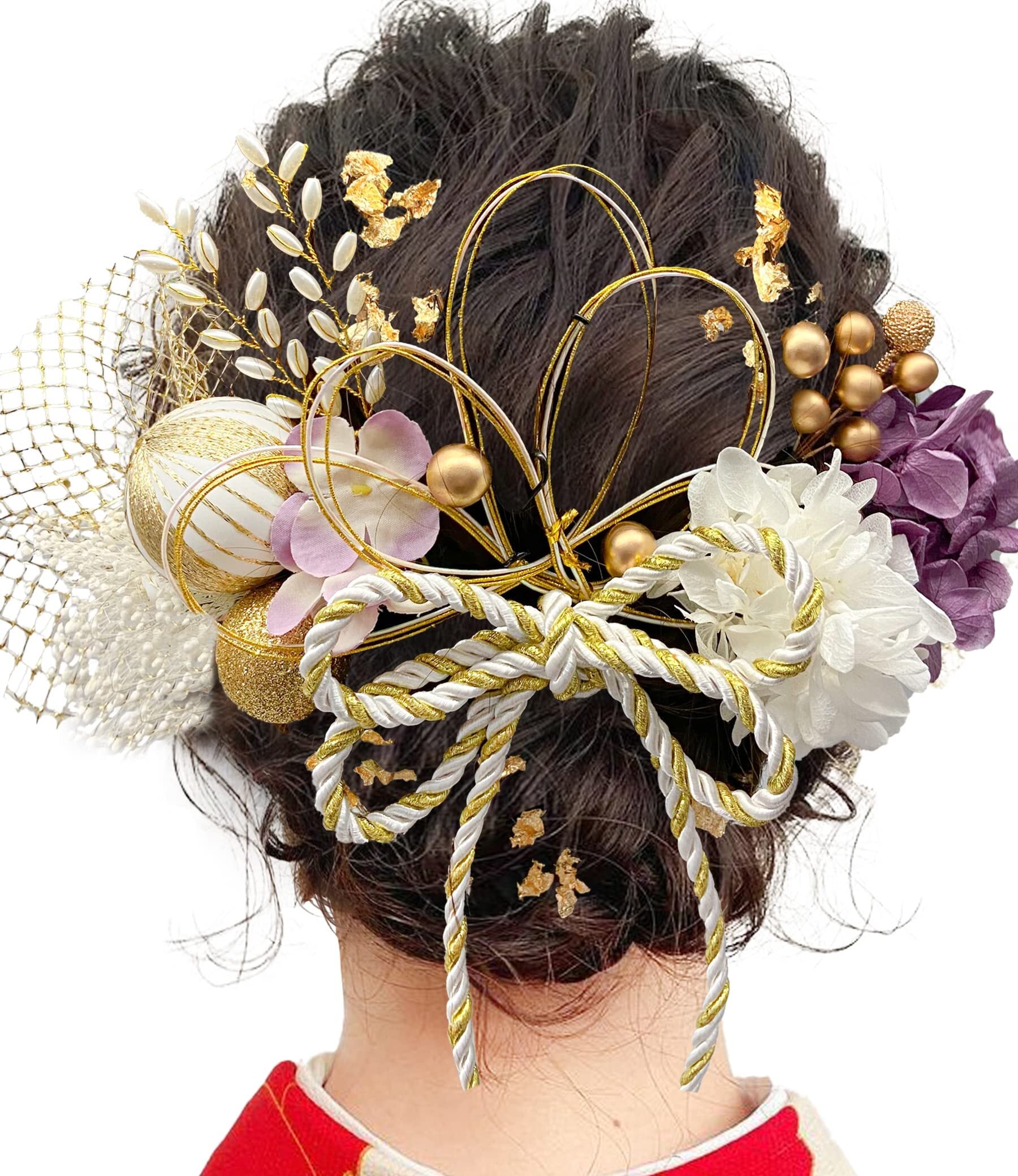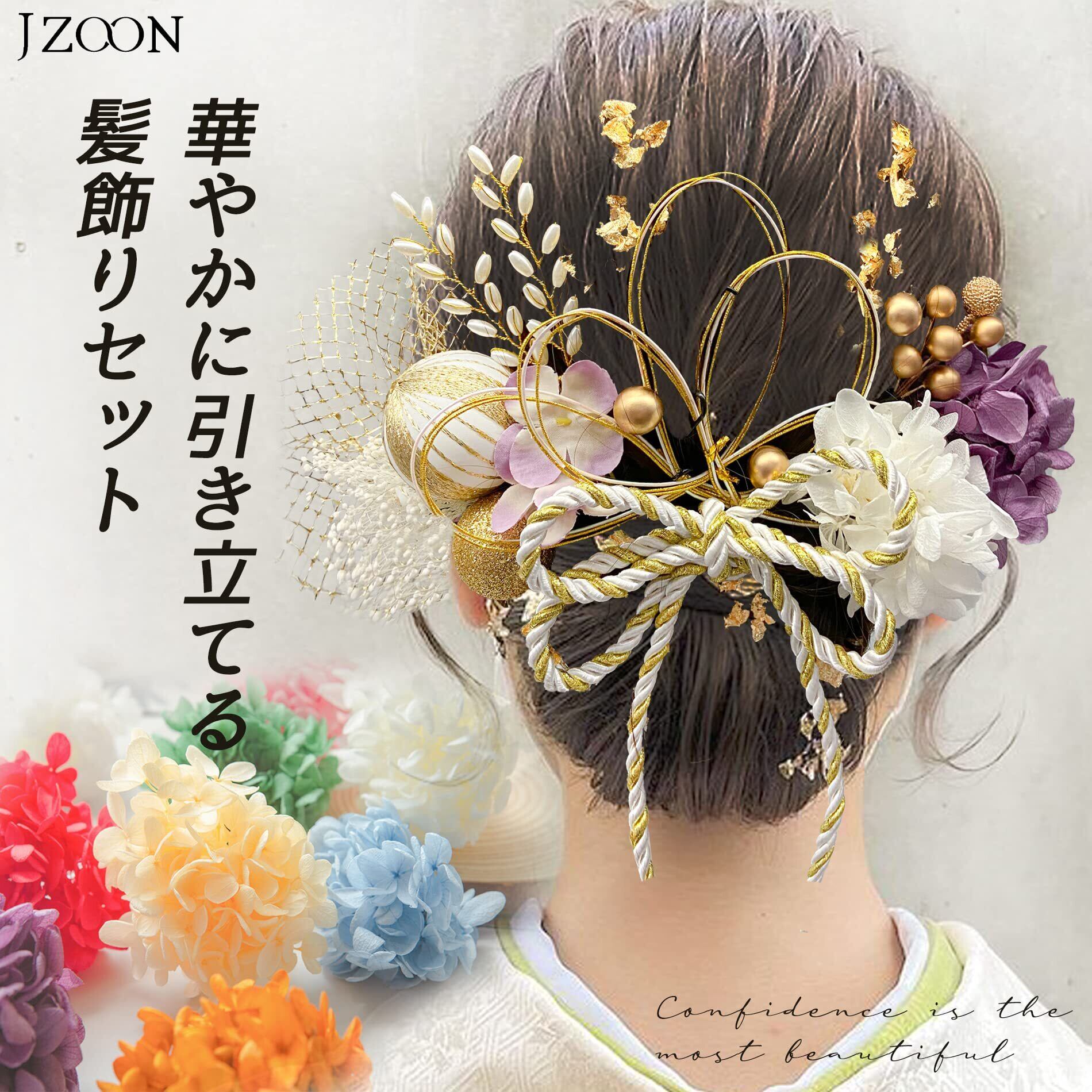 JZOON 成人式 髪飾り ヘアアクセサリー アジサイ テールリード ソーラーローズ アンティークベリー パール 水引き 金箔 リボン タッセル 結婚式 ウェディング 卒業式 発表会 入学式 披露宴 卒園式 お祭り 和装 振袖 浴衣 上品 おしゃれ 前撮り
