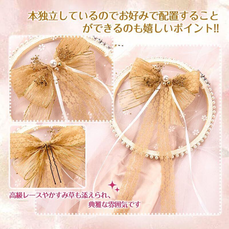 [OTAKUMARKET] 髪飾り 成人式 振袖 リボン 12点セット 花 袴 卒業式 着物 髪 飾り 和装 浴衣 髪 飾り 水引き 七五三 コーム ヘアアクセサリー 金箔 付き 3カラー (ゴールド)