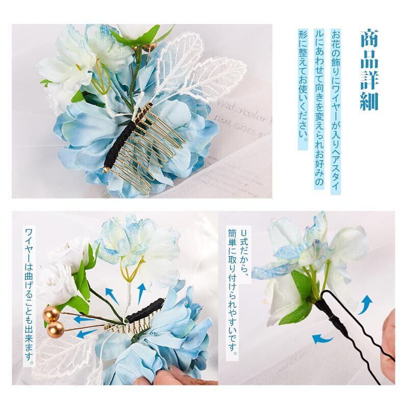 【和装髪飾りセット内容】髪飾2点セット。Uピン&コーム仕様の髪飾りは簡単に取り付けられやすいです。ピンは曲げることも出来ます。綺麗に梱包しますので、新年、誕生日、クリスマス、バレンタインデーギフトとしてお勧めます。浴衣や着物などの和服だけでなく、普段使いにも便利な一本タイプです。
