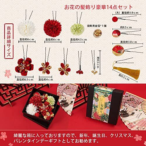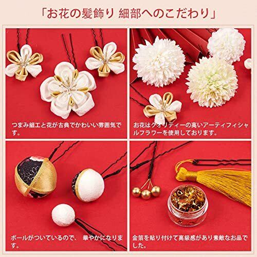 【和装髪飾りセット内容】髪飾13点セット。Uピン仕様の髪飾りは簡単に取り付けられやすいです。ピンは曲げることも出来ます。小さめのものを複数付けて、どの方向から写真を撮っても映えるようにするのも可愛いですね。綺麗に梱包しますので、新年、誕生日、クリスマス、バレンタインデーギフトとしてお勧めます。浴衣や着物などの和服だけでなく、普段使いにも便利な一本タイプです。