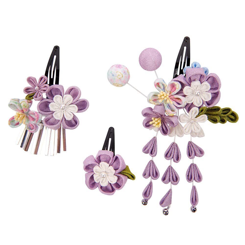 [OTAKUMARKET] 七五三 髪飾り 成人式 3点セット 振袖 浴衣 和装 つまみ細工 髪 飾り 着物 髪飾り 袴 卒業式 結婚式 鈴付き 三歳 七歳 女の子 ガールズ 5カラー | Bloomia