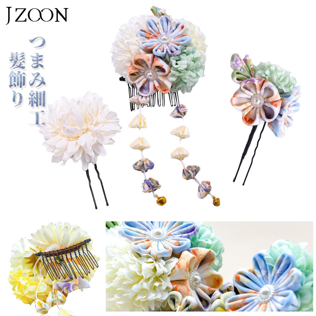 [JZOON] 髪飾り 七五三 髪飾り 3点セット つまみ細工 七五三 成人式 浴衣 袴 着物 振袖 和装 花 卒業式 結婚式 手作り H1024