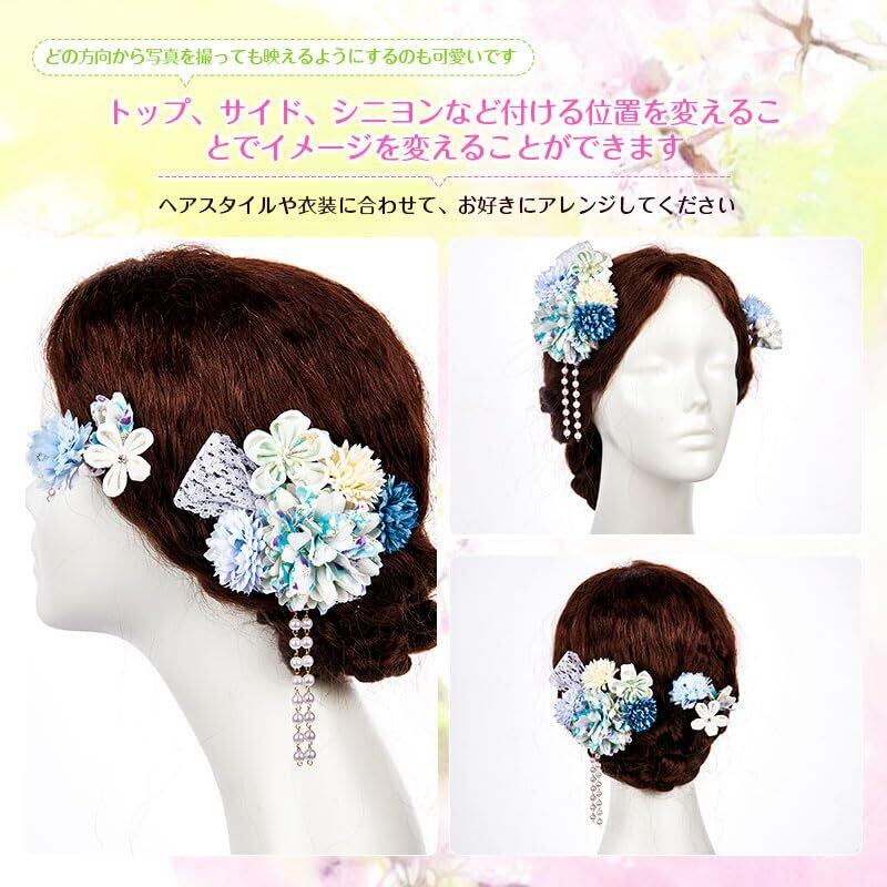 髪飾り 浴衣 七五三 2点セット 成人式 振袖 つまみ細工 花 袴 着物 髪 飾り 和装 卒業式 結婚式 髪 飾り 髪留め コーム ヘアアクセサリー 4カラー (ブルー)