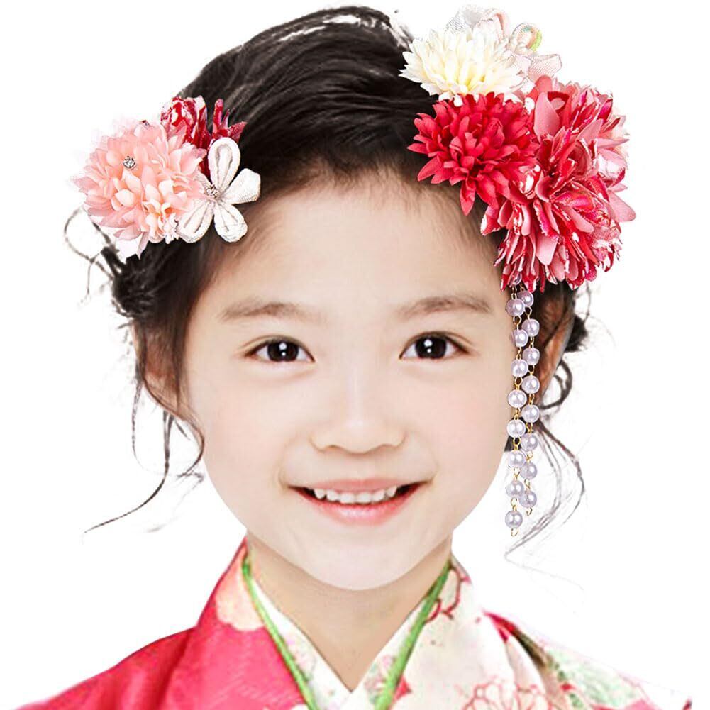 [OTAKUMARKET] 髪飾り 七五三 2点セット 浴衣 成人式 振袖 つまみ細工 花 袴 着物 髪 飾り 和装 卒業式 結婚式 髪 飾り 髪留め コーム ヘアアクセサリー 4カラー (赤) | Bloomia