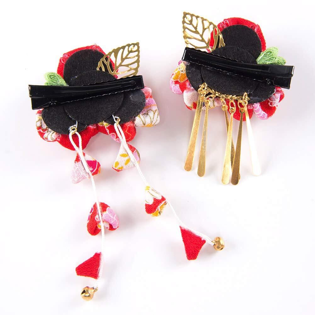 [Florica] 髪飾り 2点セット 和装 髪飾り 成人式 髪飾り 振袖 卒業式 七五三 女の子 フラワー 鈴付き つまみ細工 ヘアアクセサリー 髪留め 花 収納ポーチ付き