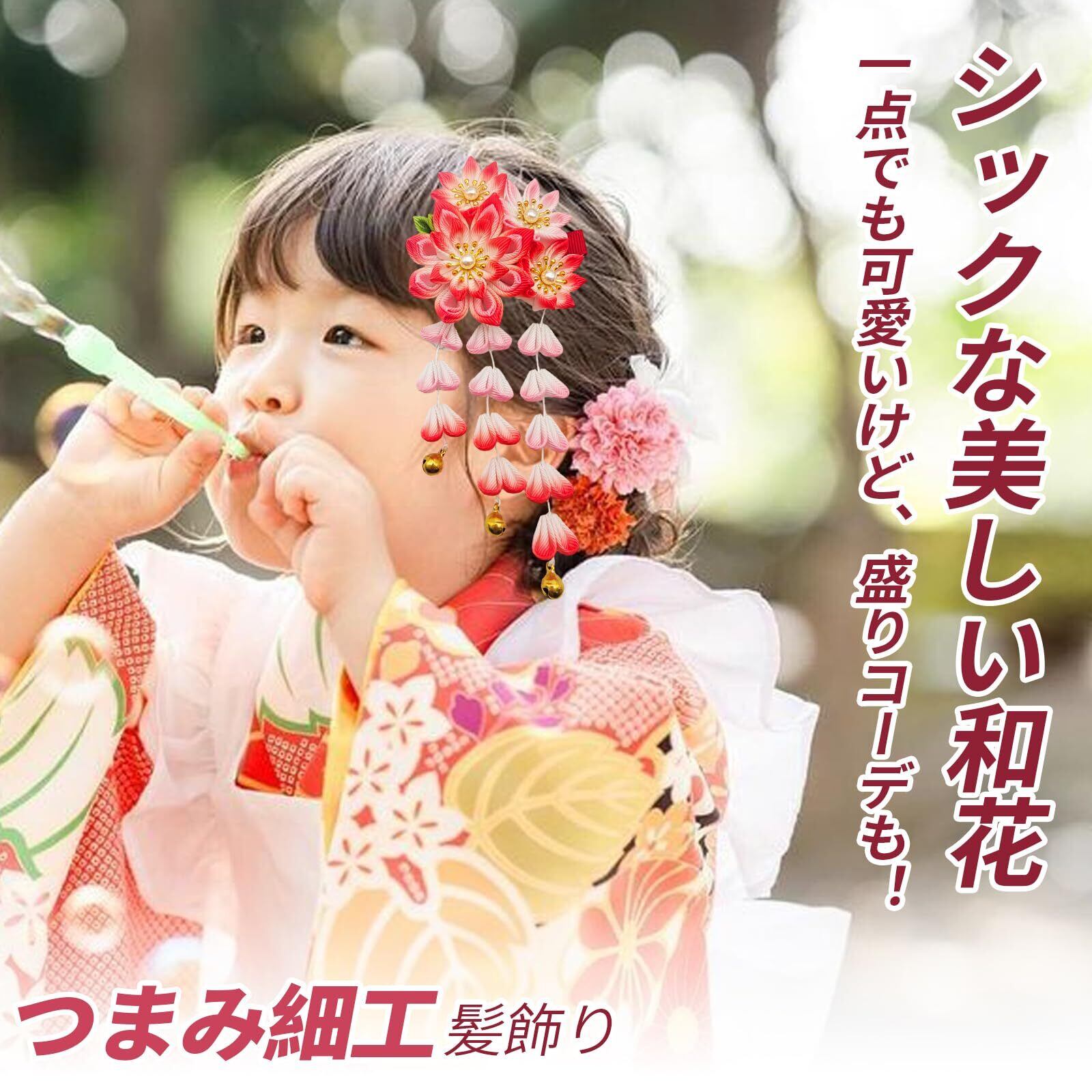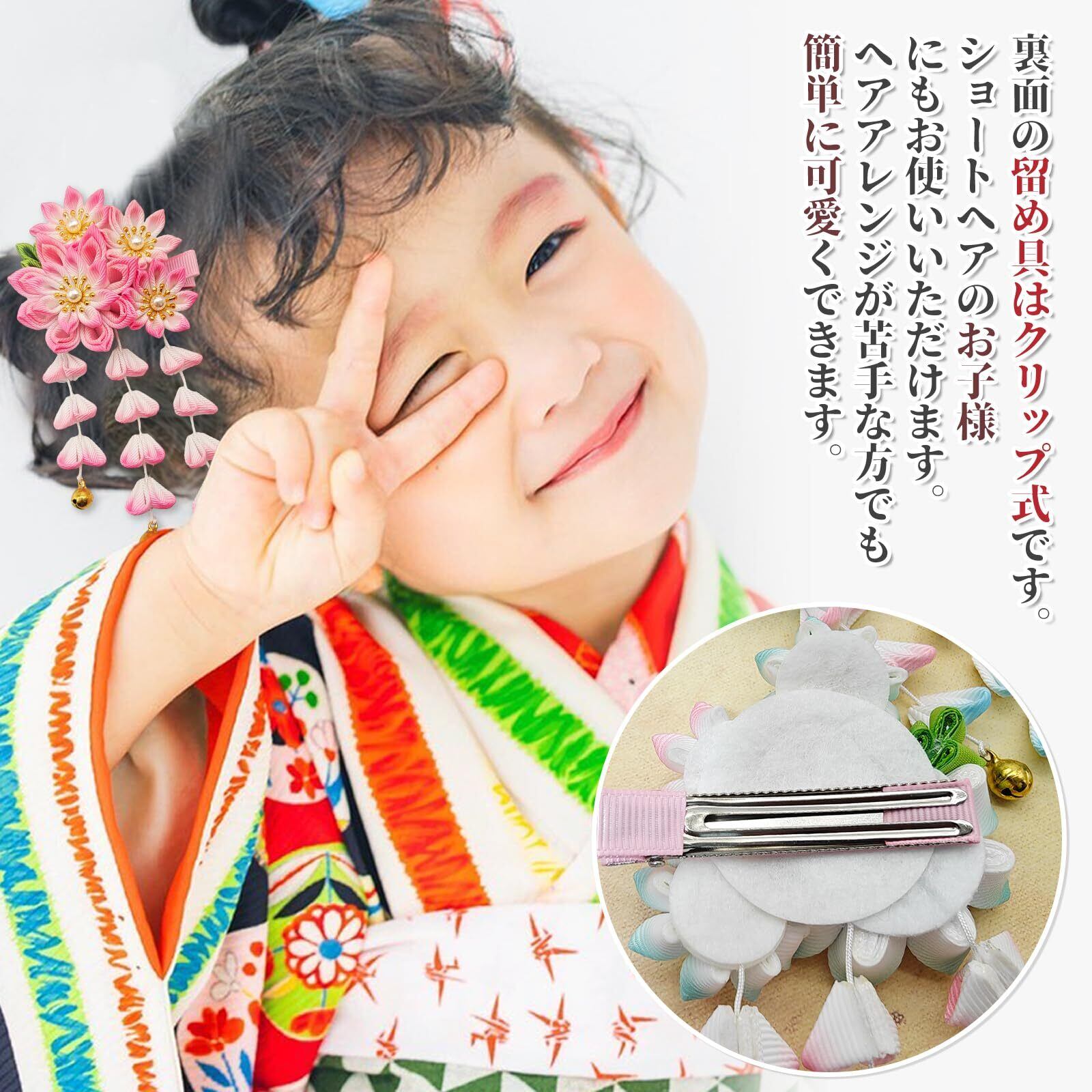 [Baramoly] 髪飾り 七五三 成人式 つまみ細工 花 付け足し 結婚式 卒業式 お正月 和装 着物 留袖 振袖 浴衣 袴 和柄 古典的 髪留め ポニーテール 子供用 キッズ 三歳 七歳 ハーフ