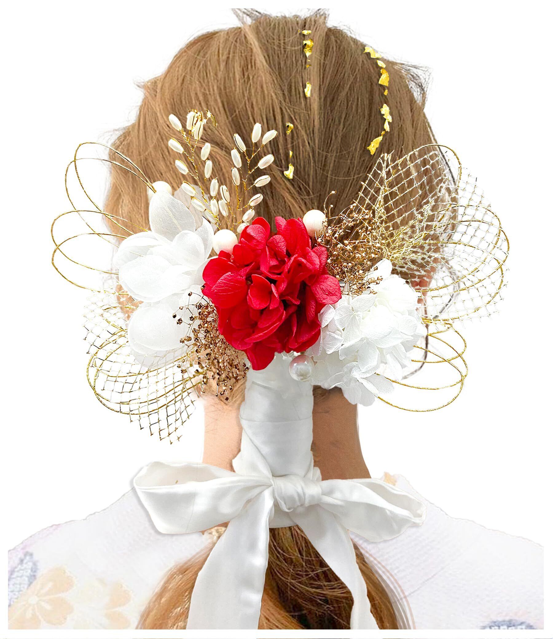 [JZOON] 髪飾り 成人式 卒業式 和装 結婚式 袴 着物 浴衣 振袖 ドライフラワー プリザーブドフラワー 花嫁 S2414