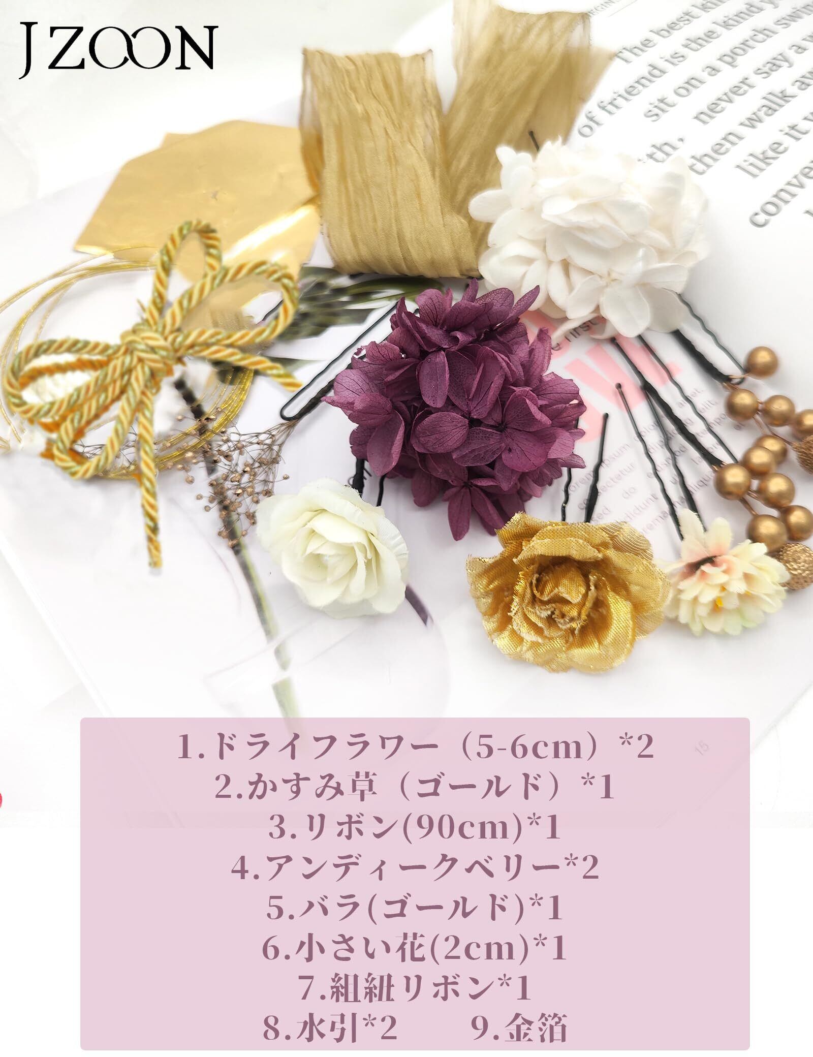 [JZOON] ドライフラワー 造花 髪飾り 花飾り 紐アレンジ ロープアレンジ 和装 浴衣 着物 振袖 袴 ヘッドドレス ウエディング 結婚式 ブライダル ヘッドアクセサリー 花 花嫁 和風 卒業式 成人式 七五三 A2310 | Bloomia