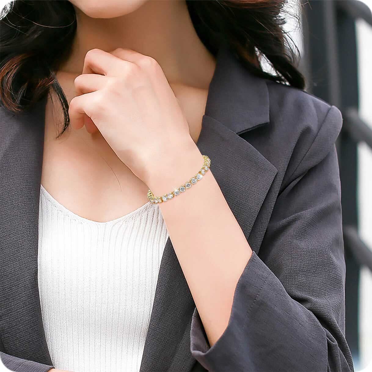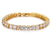 【素材】24金ゴールドフィルド / CzダイヤモンドAAA。幅5mmの大粒CZダイヤストーンを30粒以上配置したラグジュアリーなテニスブレスレットです。長さ:約18.5cm/16g。