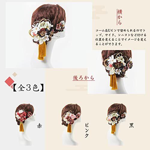 [OTAKUMARKET] 髪飾り 成人式 振袖 2点セット つまみ細工 花 七五三 袴 着物 髪 飾り 和装 卒業式 浴衣 結婚式 髪 飾り 髪留め コーム ヘアアクセサリー 3カラー