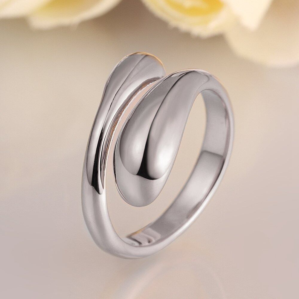 [Rockyu] ジュエリー ブランド 人気 リング レディース ホワイトゴールド フリーサイズ ステンレス 指輪 流れる雫 ファランジリング ファッション アクセサリー