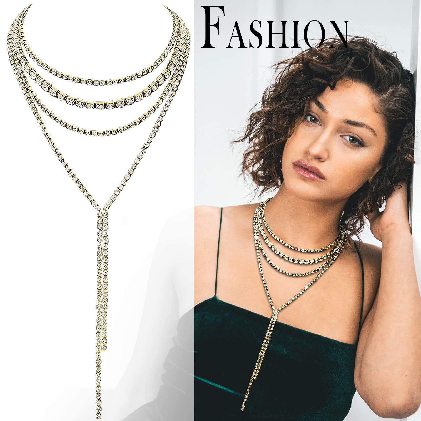 [Aroncent] チョーカー 首輪 ネックレス チェーン キラキラ レディース セクシー 可愛い おしゃれ ラインストーン 多重卷き デート 結婚式 パーティー イベント イブニング レディース ファッション アクセサリー