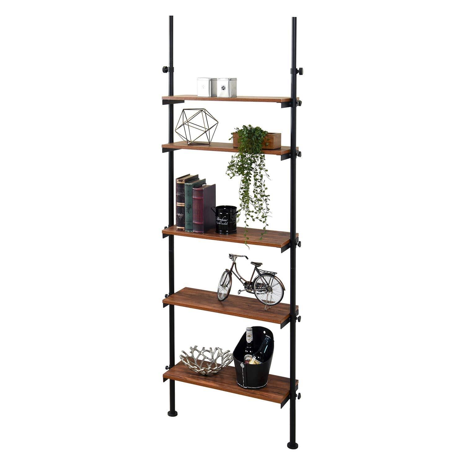 萩原(Hagihara) オープンシェルフ ラック 突っ張り 【木目調棚】 5段 幅70 無段階調節 ブラウン×ブラック KTR-3155BR