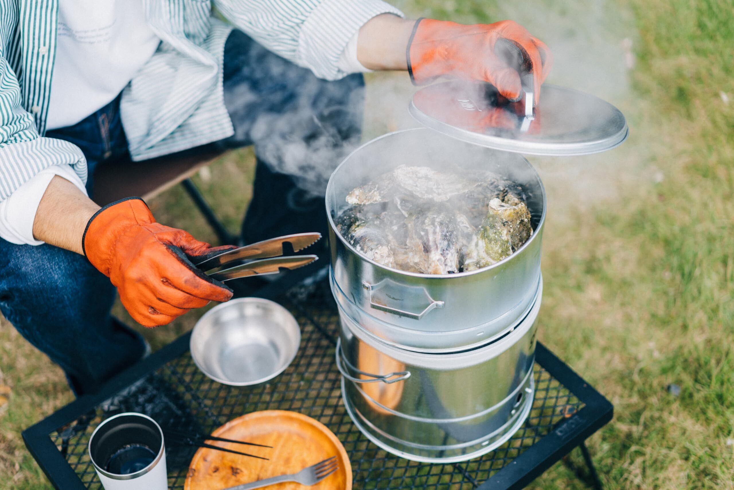 BBQコンロの上やカセットコンロの上で調理できる。日本製
