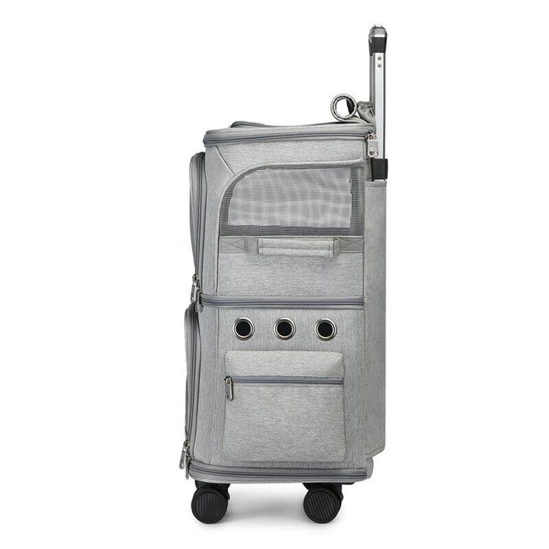 ペットキャリーバック 2層 2匹 猫 多頭飼い ペットキャリー 2層 ボストンキャリー ペットカート 4輪 多頭 猫 2匹 用 キャリーカート折りたたみ 猫犬中型2匹用ペットカート折りたたみ 通気口ポータブルケージ 360度回転 持ち手付き 変形しない散歩出かけ 防災 601337(グレー)