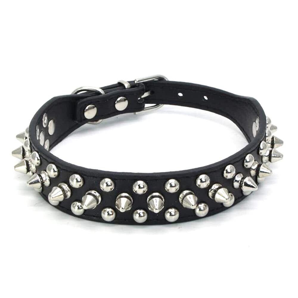 犬の首輪 スタッズ ワイルド トゲトゲ 5穴 調節 可能 小型犬 中型犬 大型犬 猫 かわいい おしゃれ (ブラック, M)