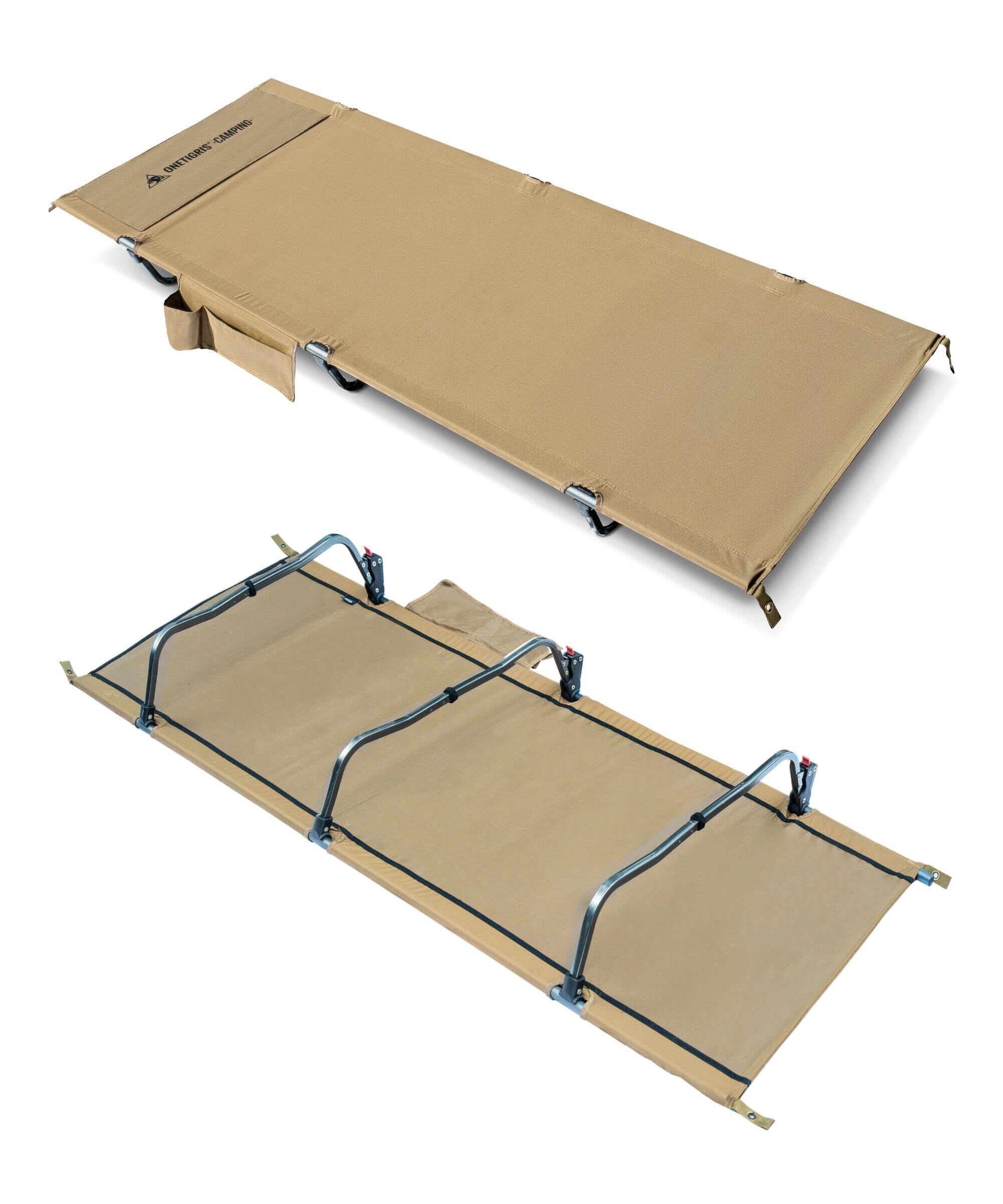 OneTigris SUPRAGRIS キャンプコット 折りたたみベッド ワイド 幅広70cm 耐荷重180kg 軽量2.6kg 7075アルミフレーム ポケット付き 組立簡単 静音 撥水 通気 収納袋付き キャンプ用 防災用 自宅用 | Bloomia