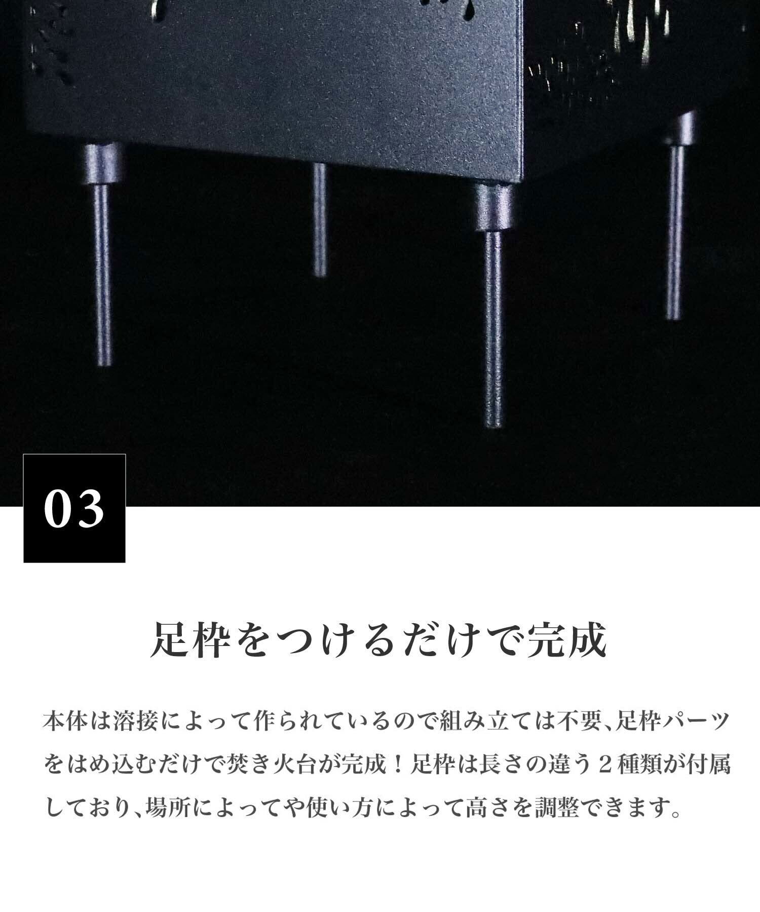 【焚き火台だけじゃない!3WAY】 夜の灯りとして、暖を取るためなどにかかせない焚き火。焼き網を使用すれば直火での調理も可能。バーベキューやちょっとした料理にも使えます。中にキャンドルやライトをいれるだけで、あっという間におしゃれなインテリアライトに大変身。