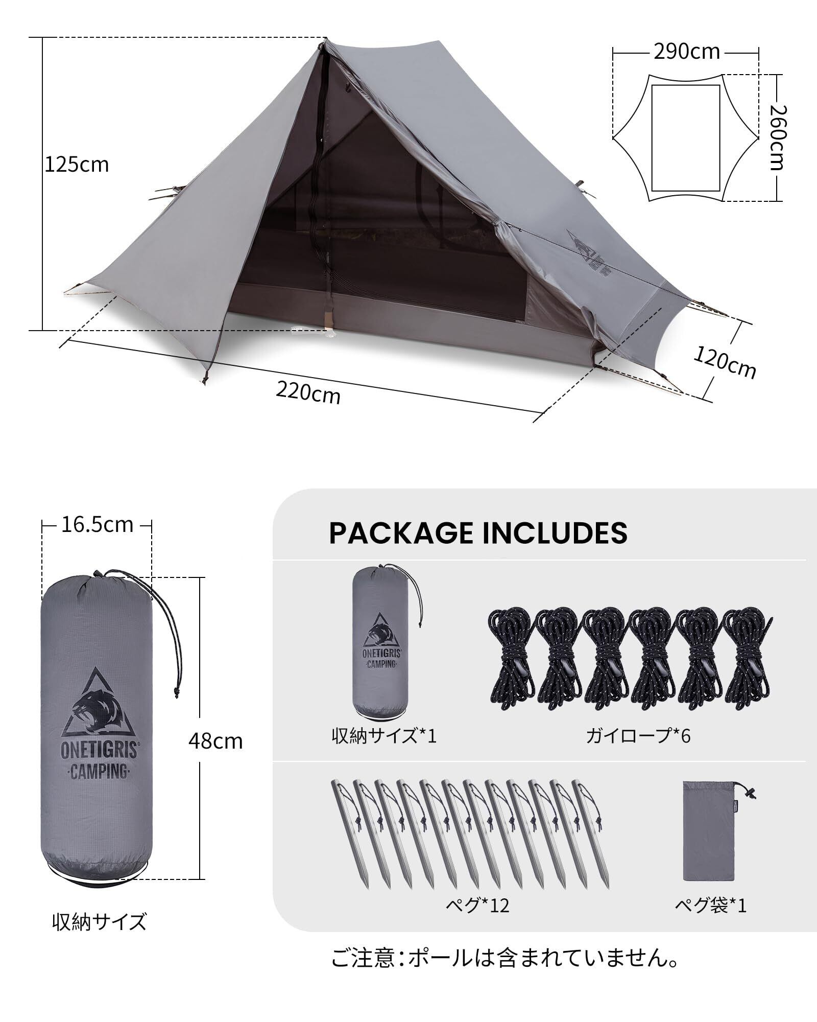 OneTigris Hillridge 軽量テント 登山用テント 2人用 良い通気性 撥水加工 耐水圧3000mm 簡単設営 前室あり 結露対策 アップグレード版 3シーズン 自転車/バイク旅行/ハイキング/キャンプ用 | Bloomia
