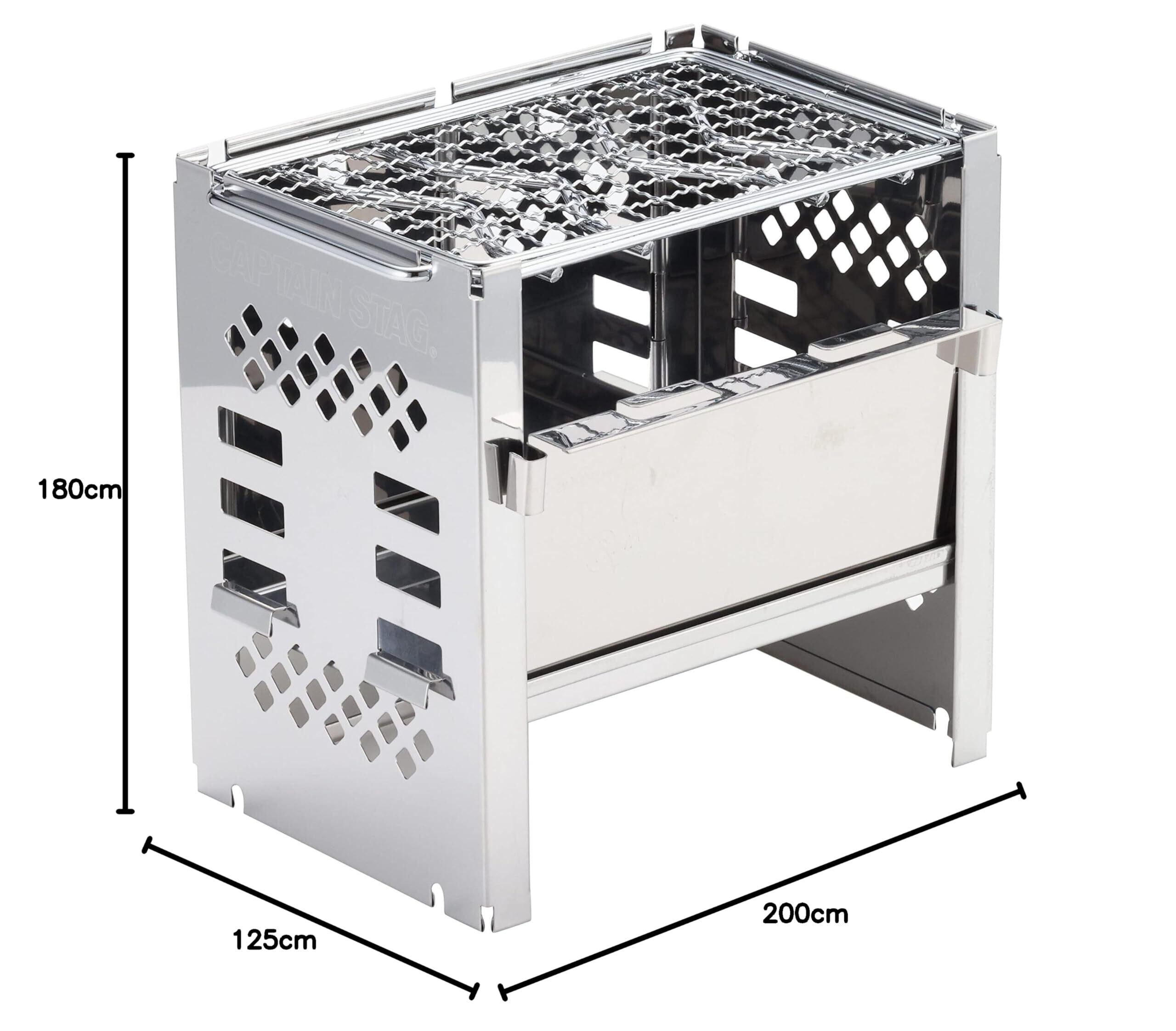 【 限定】 キャプテンスタッグ(CAPTAIN STAG) バーベキューコンロ 焚火台 1台3役 折りたたみ カマド スマートグリル 【B6型/B5型】 3段階調節可能 ステンレス製 バッグ付き UG-45/UY-7021 | Bloomia